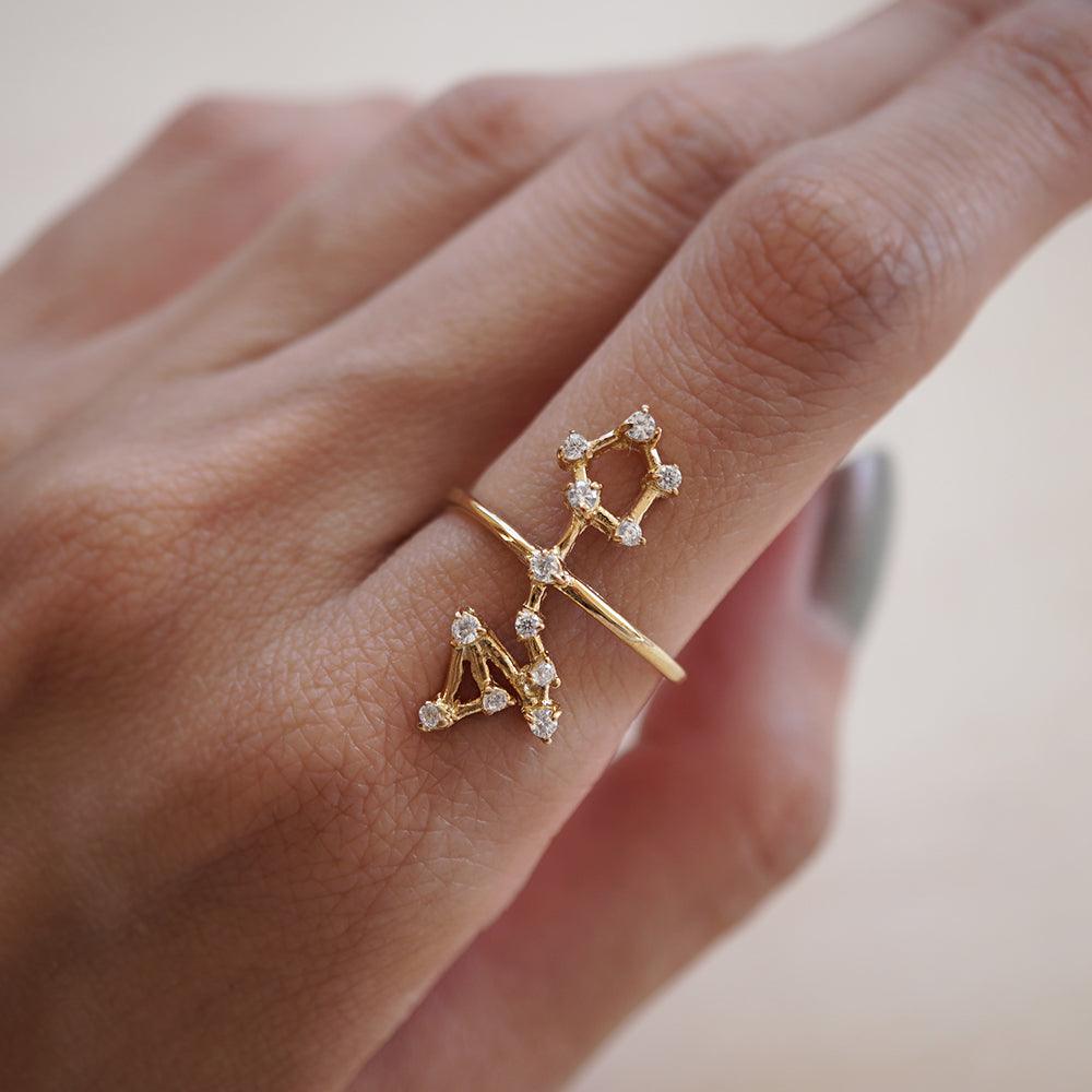 Pisces signs (February 19 - March 20). Pisces are known to be selfless, intuitive and have an artistic talent. Our Constellation rings are available in 14K solid gold, with cz.