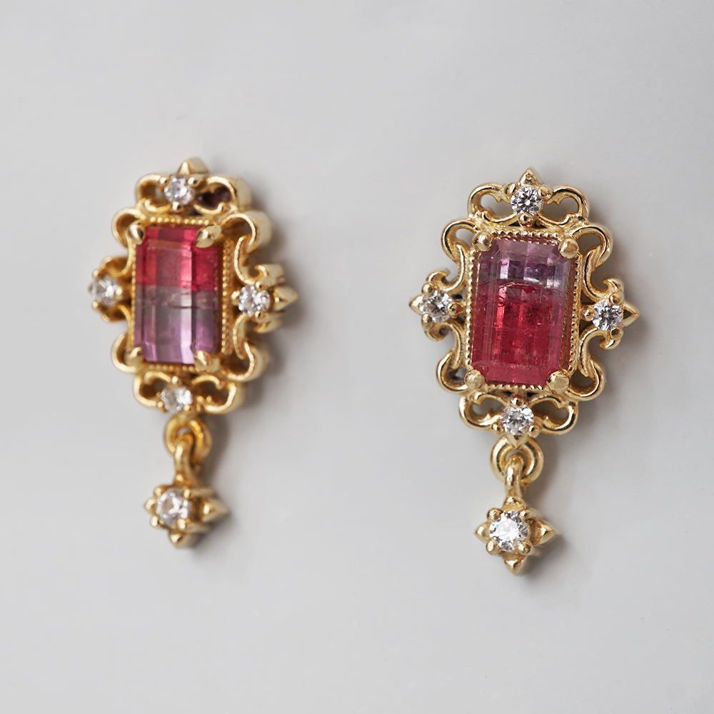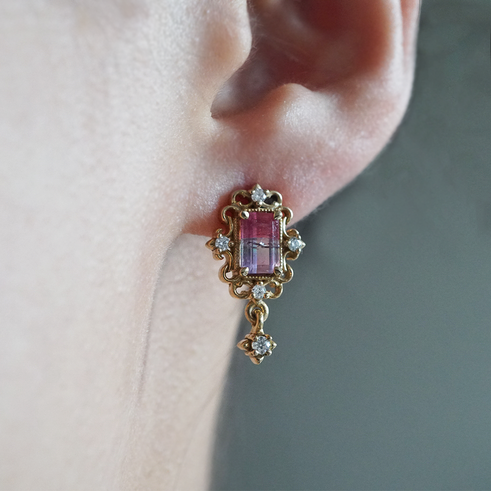 One Of A Kind: Bicolor Tourmaline Veil Diamond Ring in 14K and 18K Gold