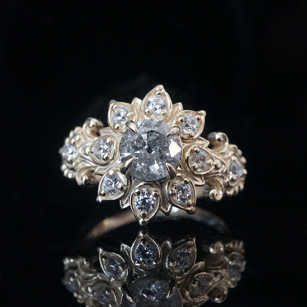 One Of A Kind: Stormheart Salt & Pepper Heart Diamond Ring in 14K and 18K Gold