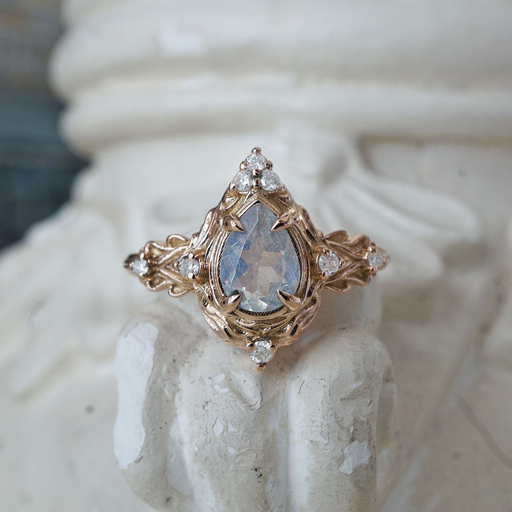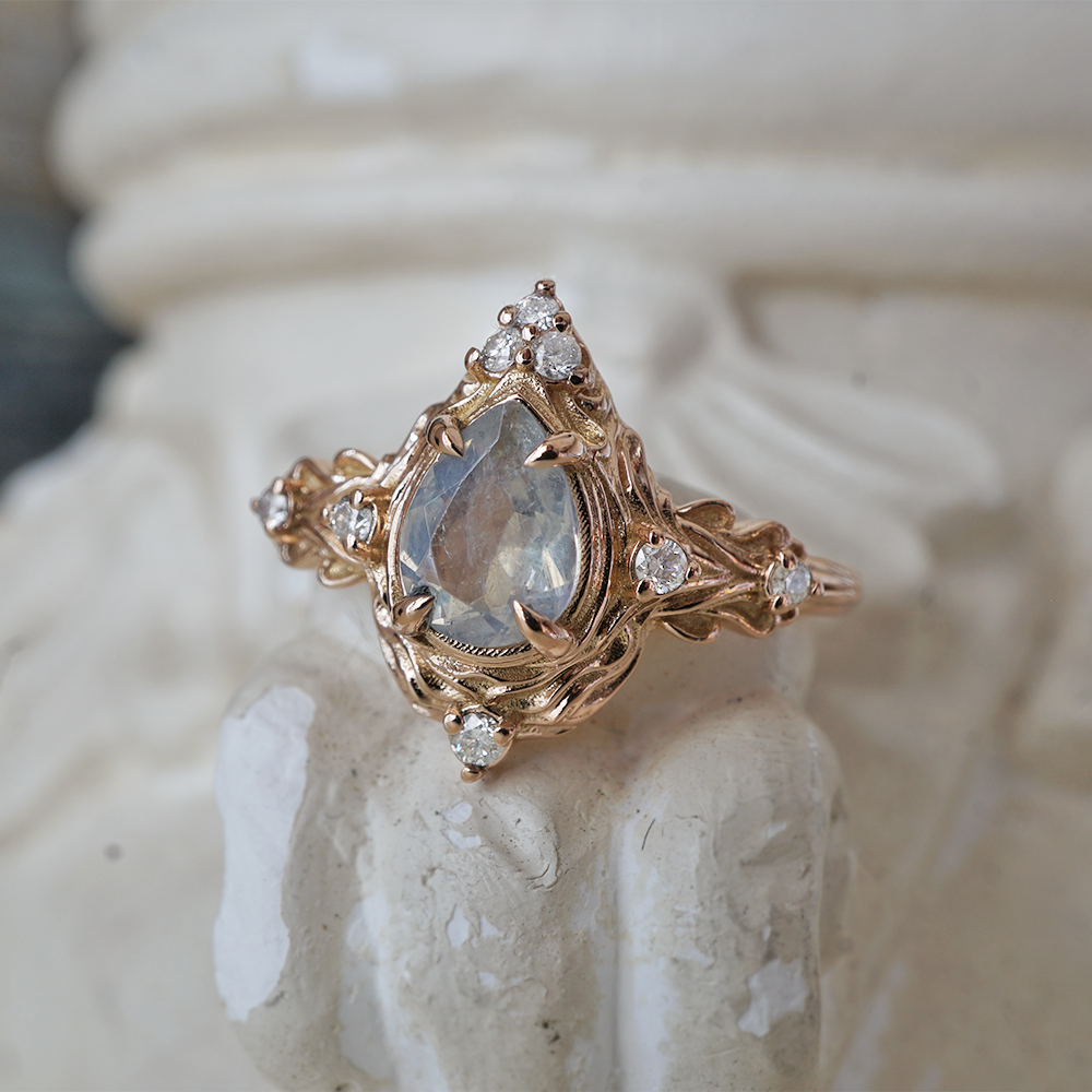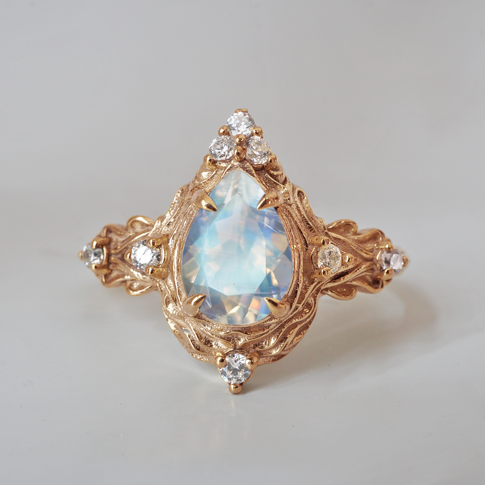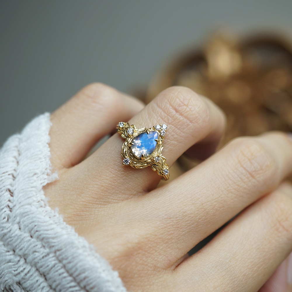 Moonstone Nature Ring in 14K and 18K Gold