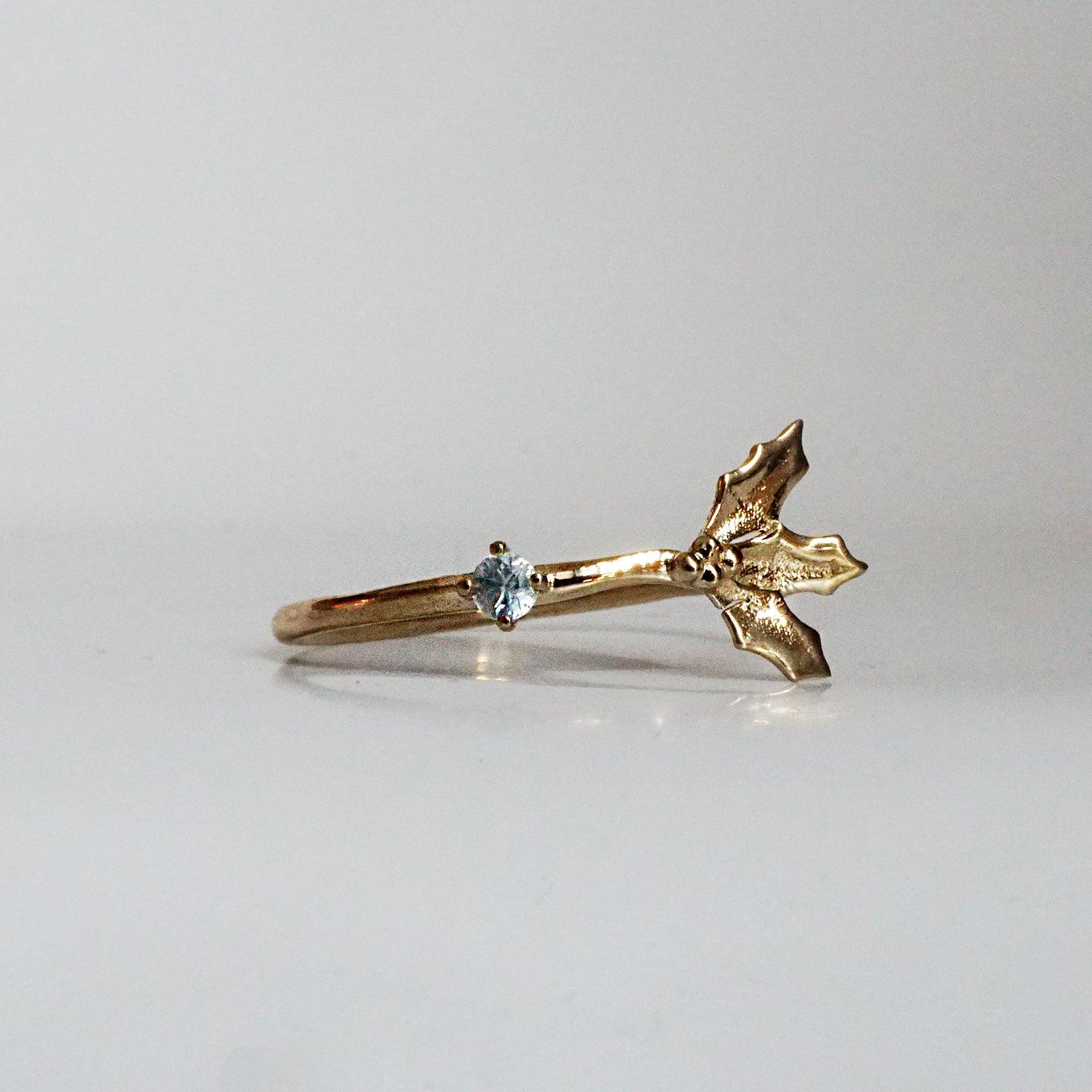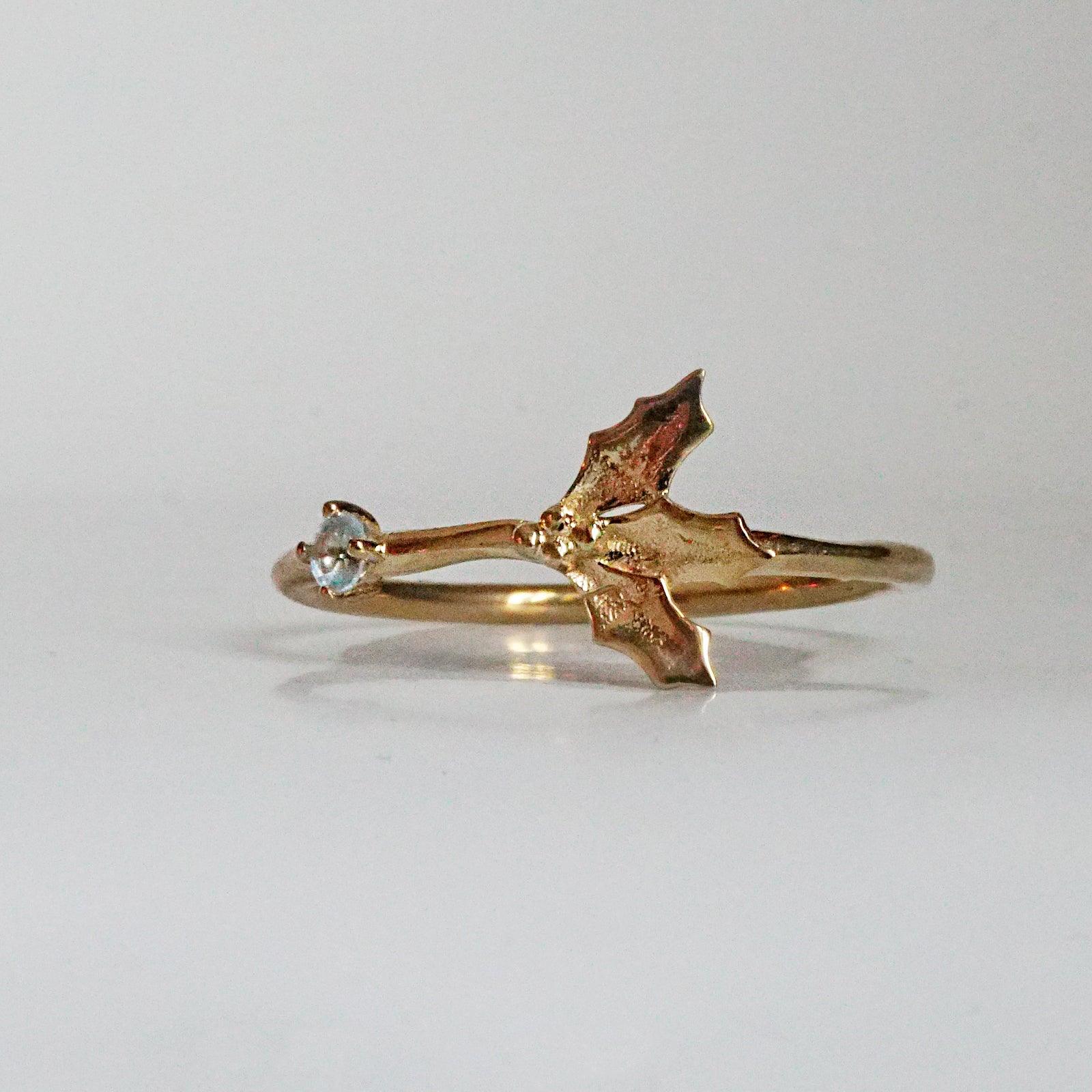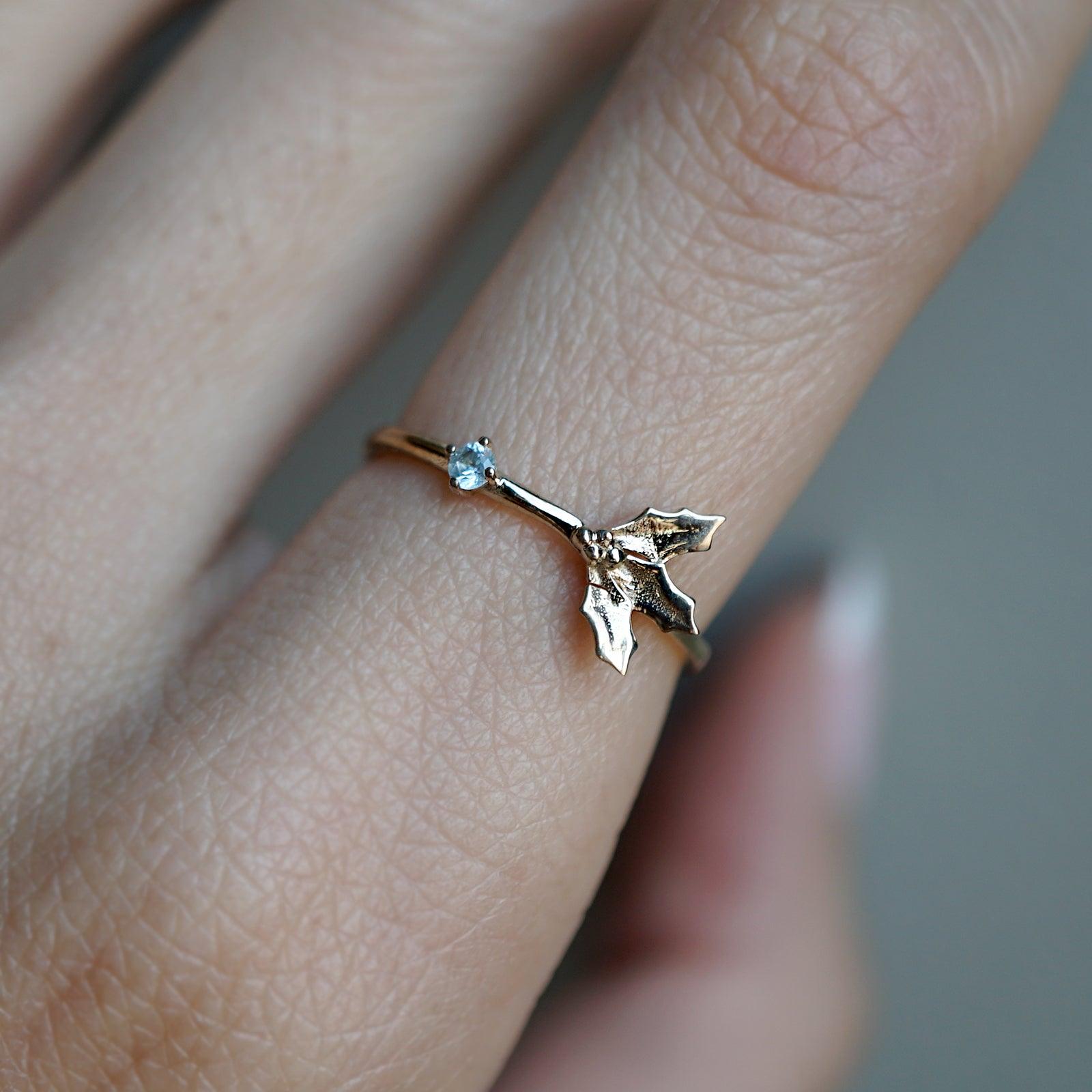 December Holly Birth Flower Ring in 14K Gold