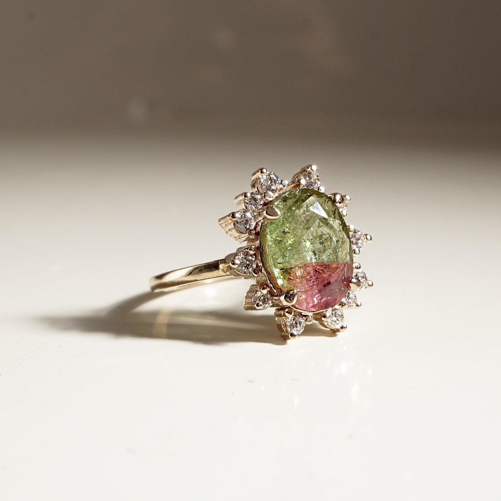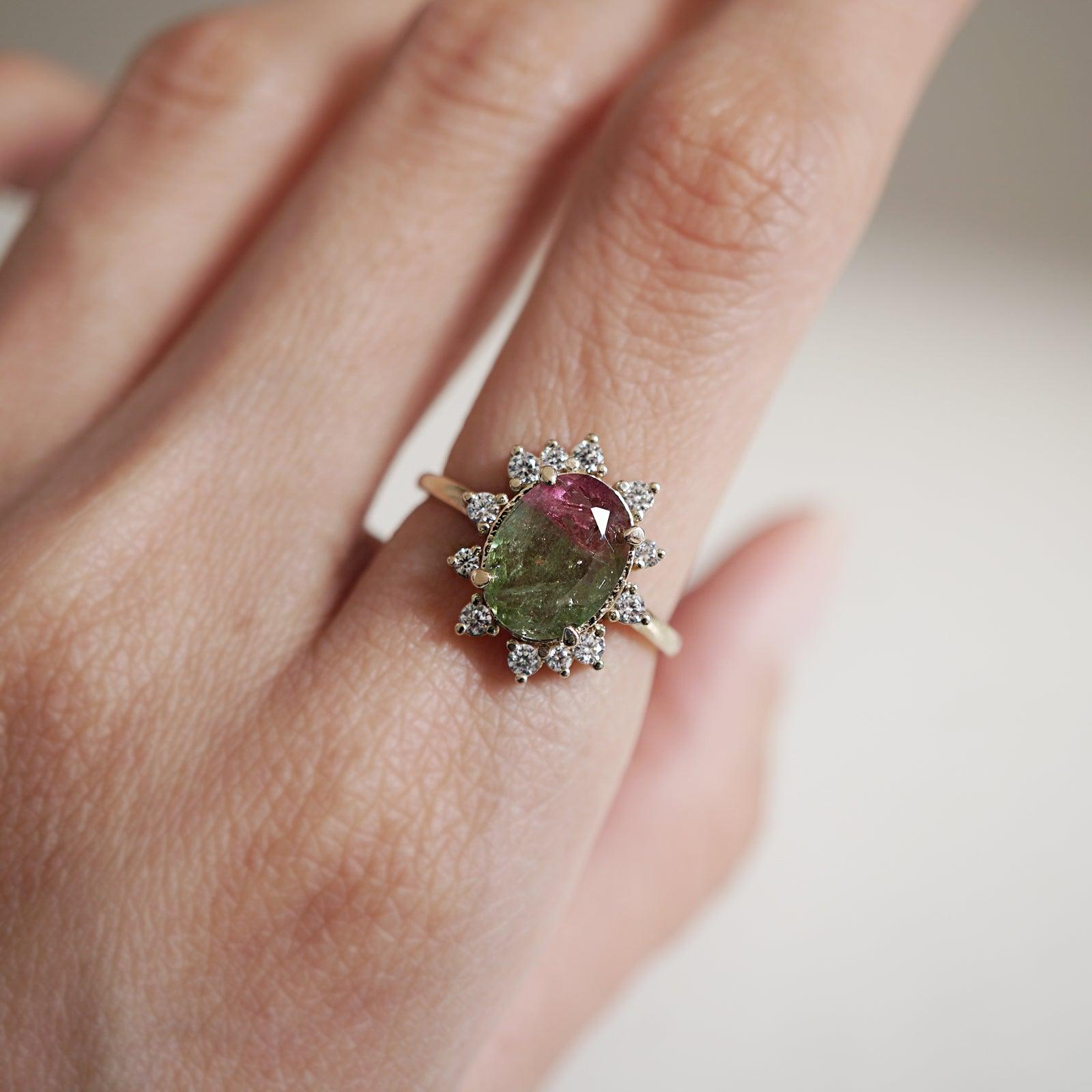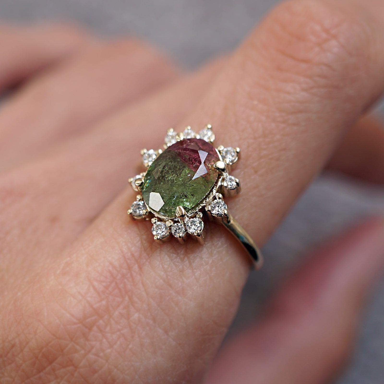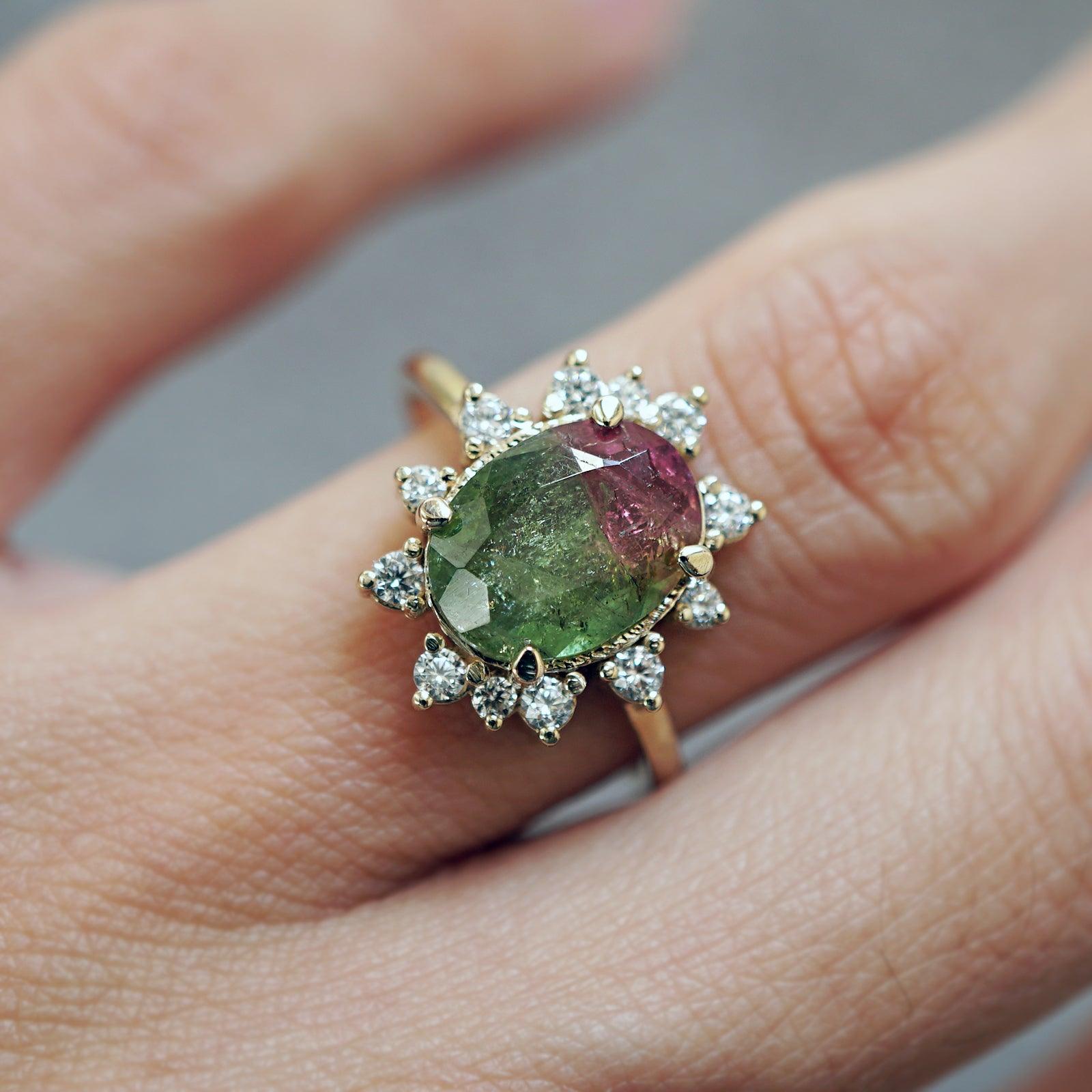 One Of A Kind: Watermelon Tourmaline Diamond Ring in 14K and 18K Gold