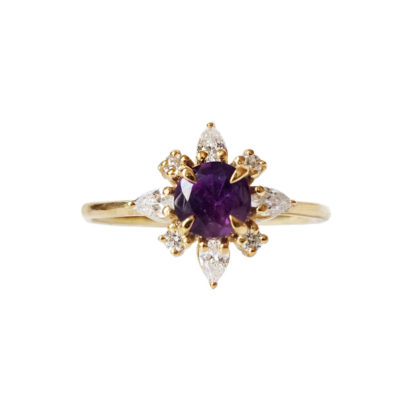 Amethyst Passion Flower Ring in 14K Gold