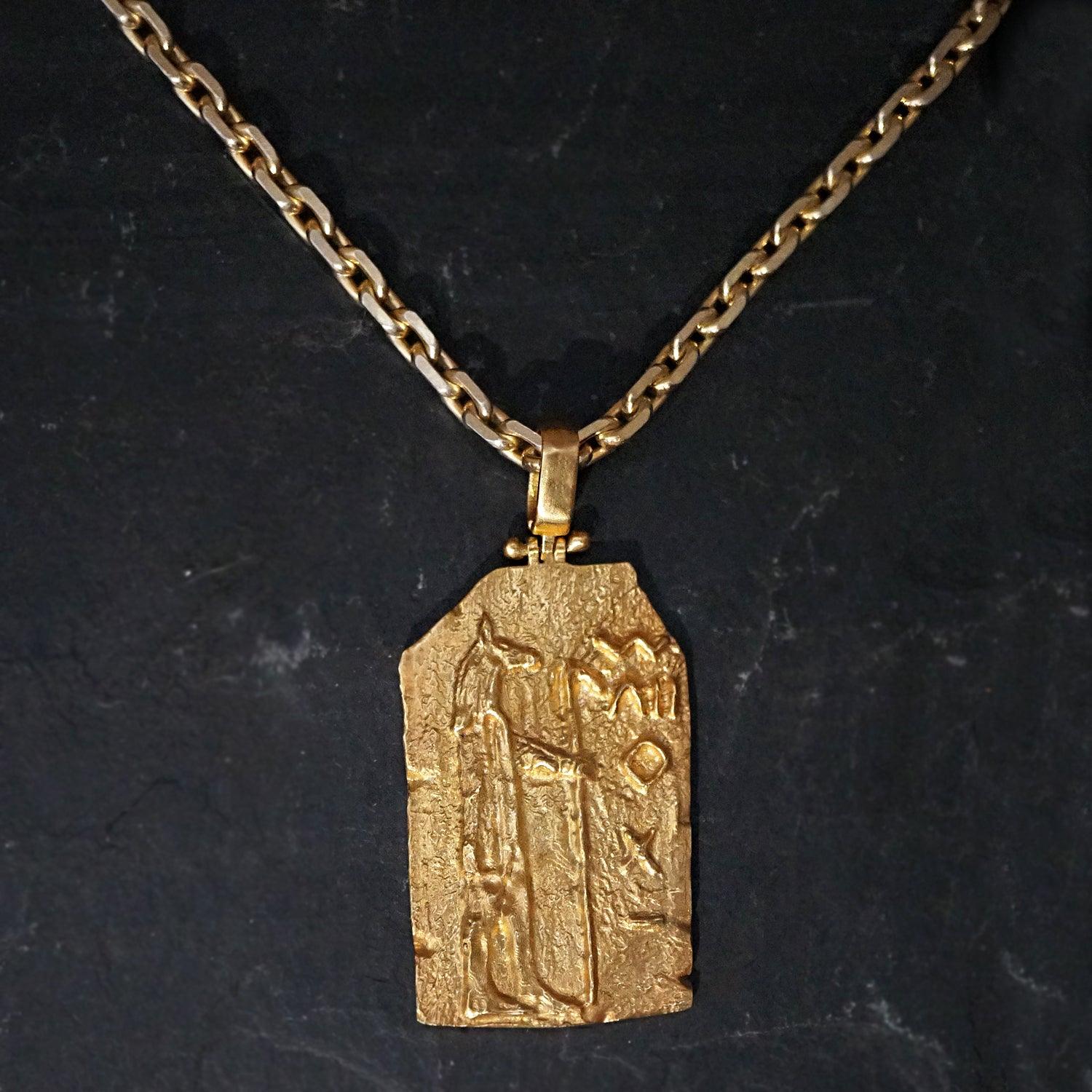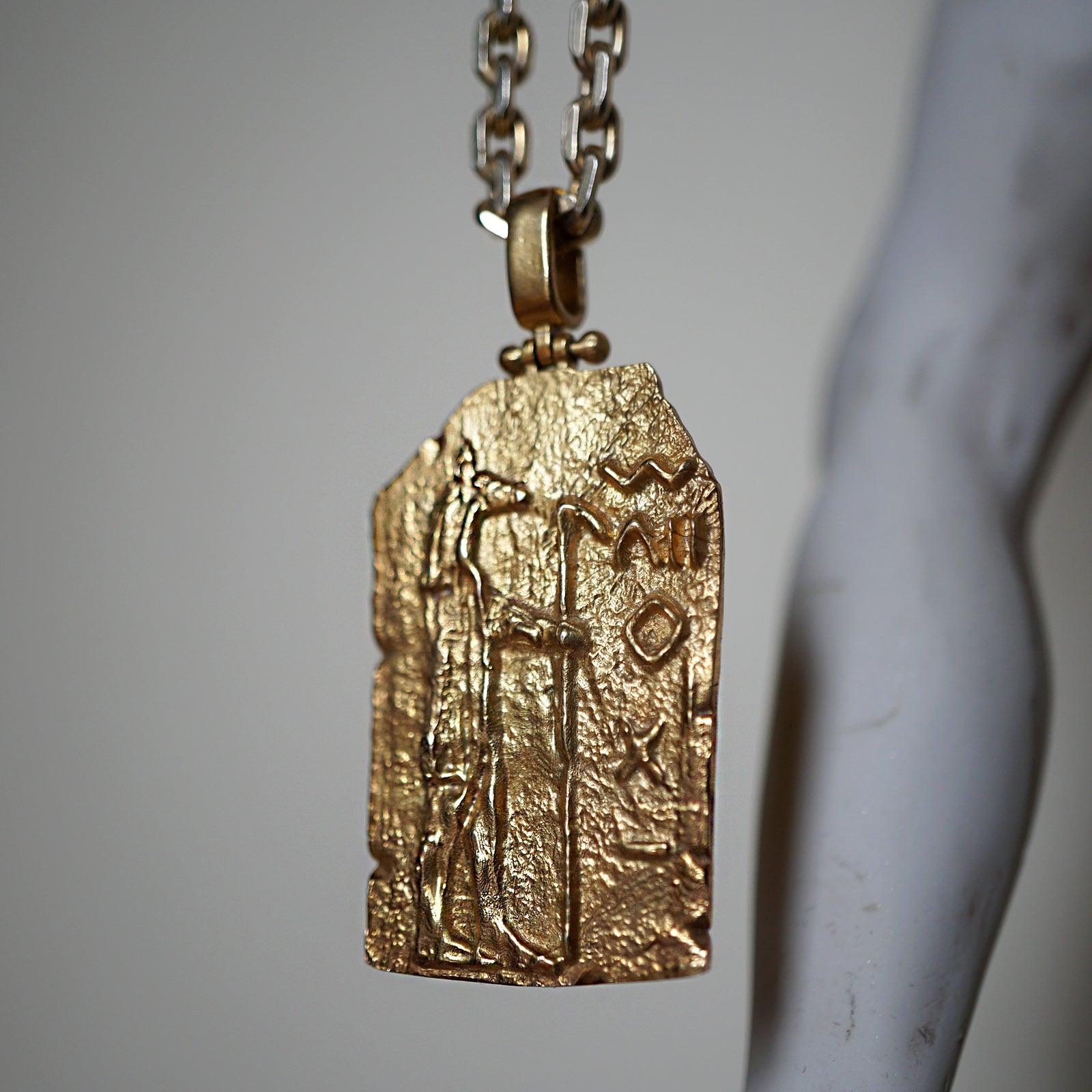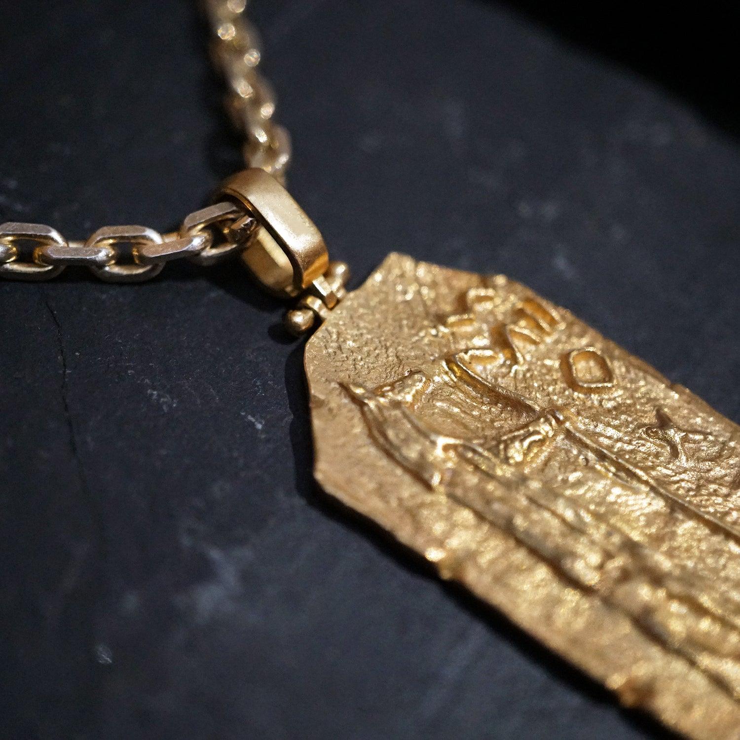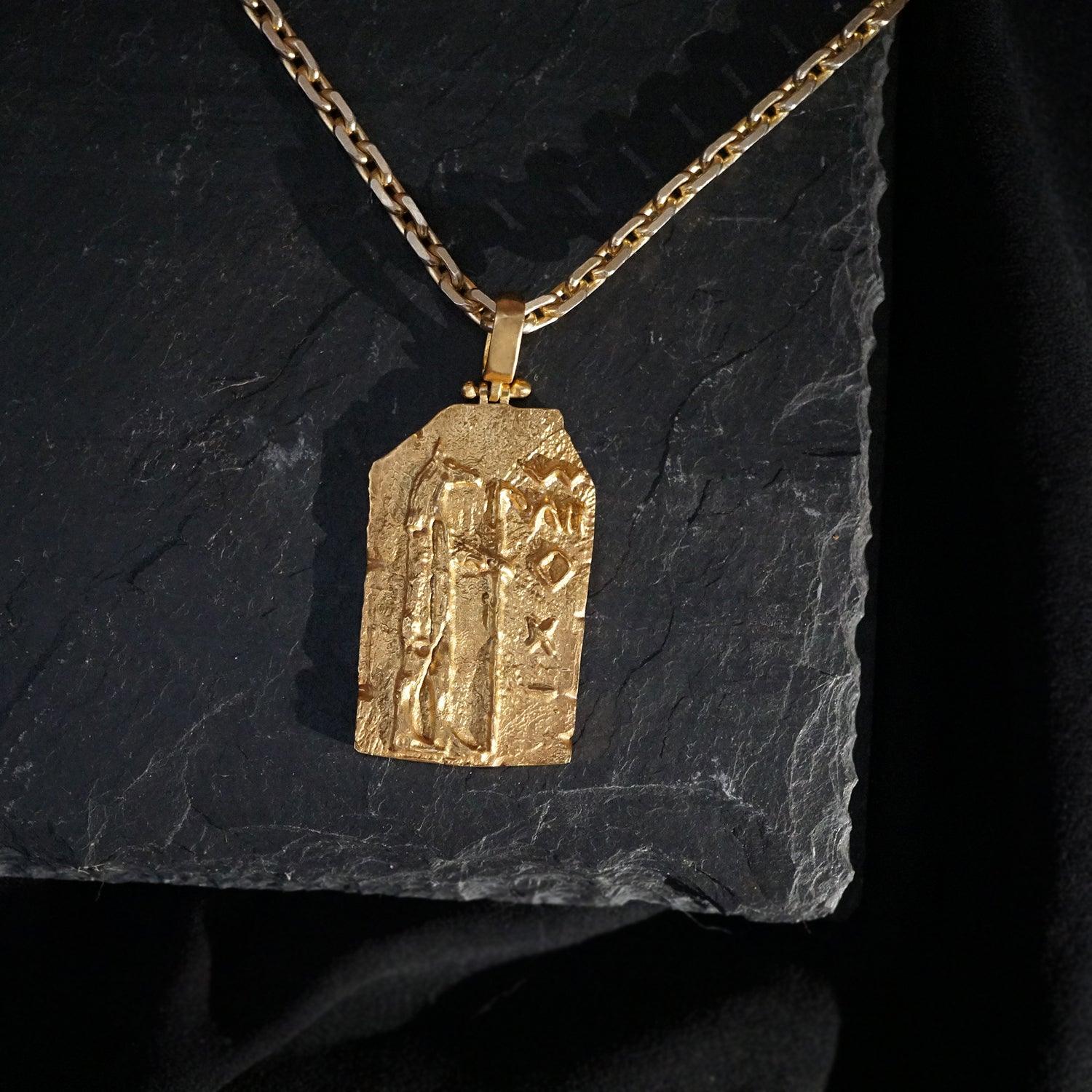 This exceptional pendant is a masterpiece of craftsmanship, available in your choice of sterling silver, 14K yellow gold, rose gold, or white gold, allowing you to select the perfect expression of your style and beliefs. The accompanying chain is made of sterling silver-based metal, elegantly plated in gold to complement the pendant's allure.