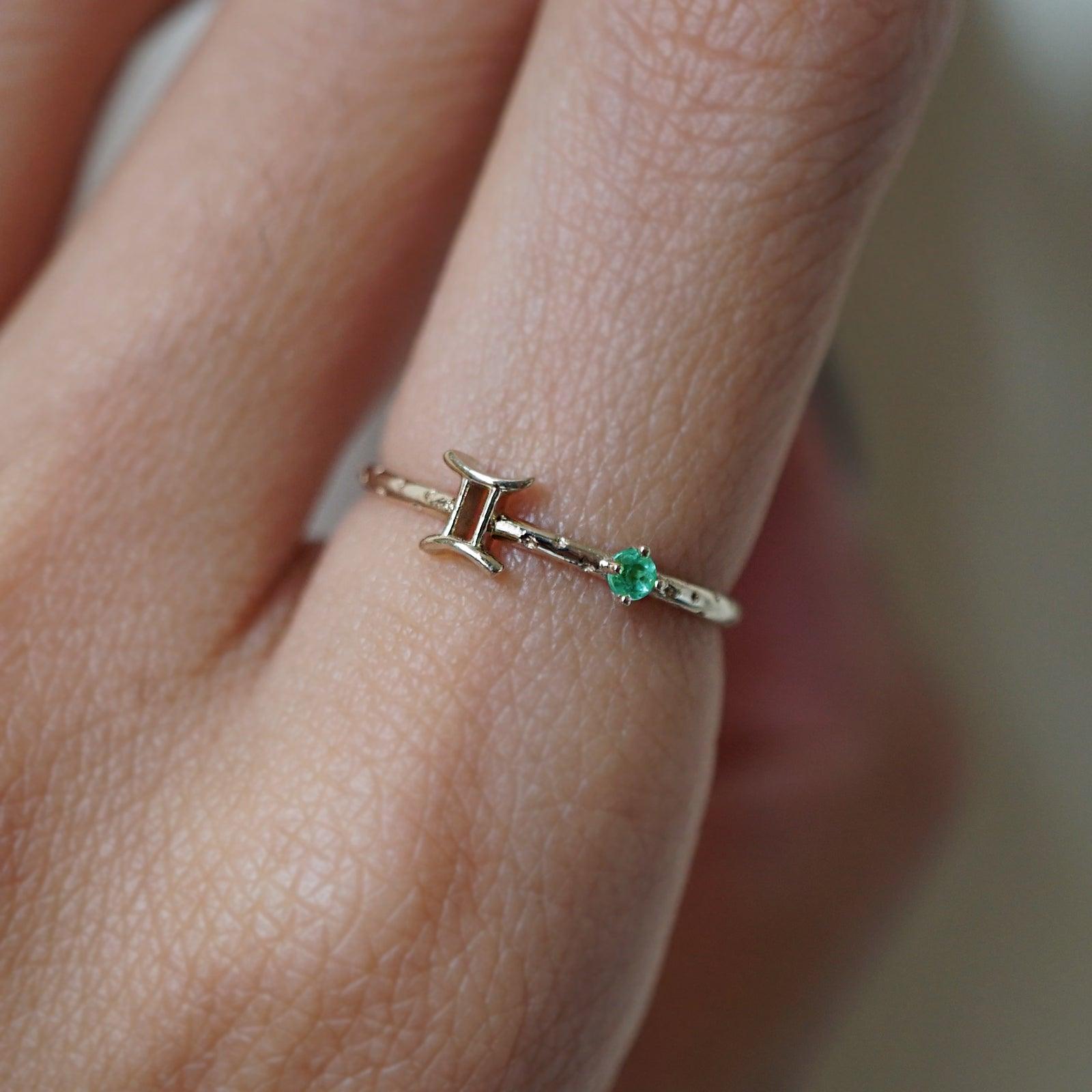 14K Gemini Horoscope Birthstone Ring (Pearl + Emerald)