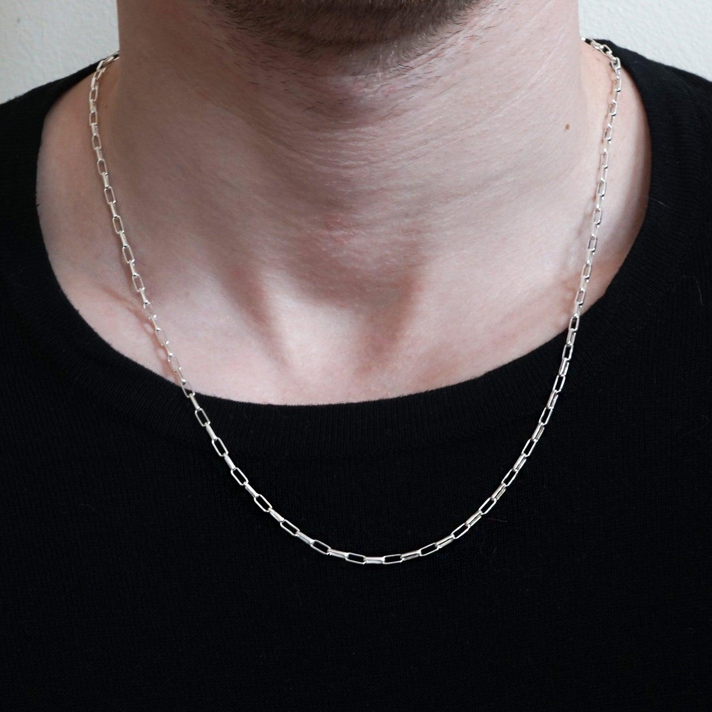 Our Industrial chain is made in solid sterling silver with spring clasps. It can be worn with any of your charms or as is. A simple yet sophisticated addition to your daily wear. Chain comes in your choice of yellow gold vermeil, rose gold or silver. Model is wearing a 24" chain.