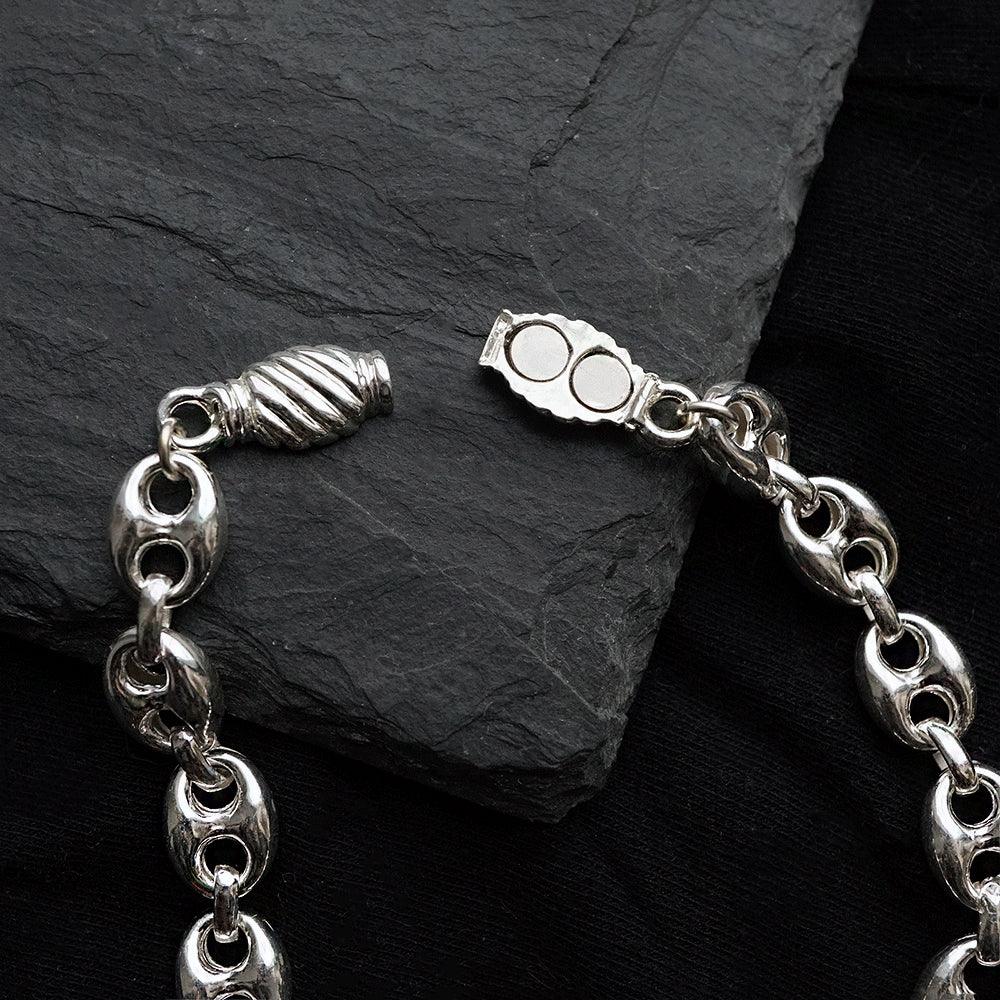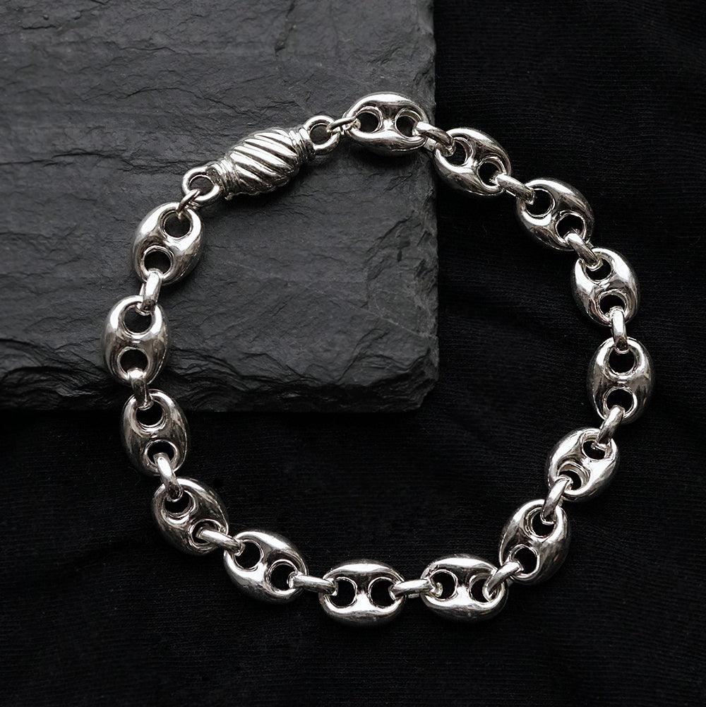 The Puffed Anchor Bracelet reimagines classic chain design with a bold, modern twist. Crafted in sterling silver, its softly rounded, puffy anchor links create a sculptural yet lightweight feel that sits comfortably on the wrist.