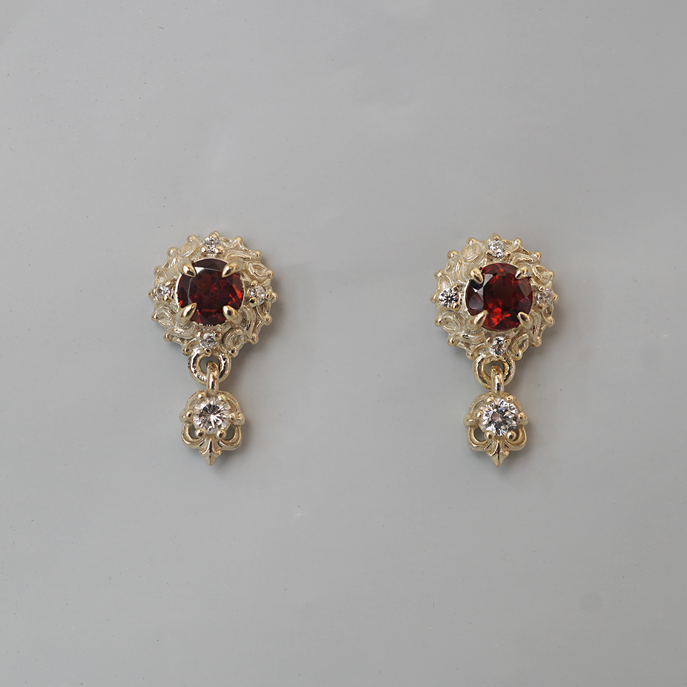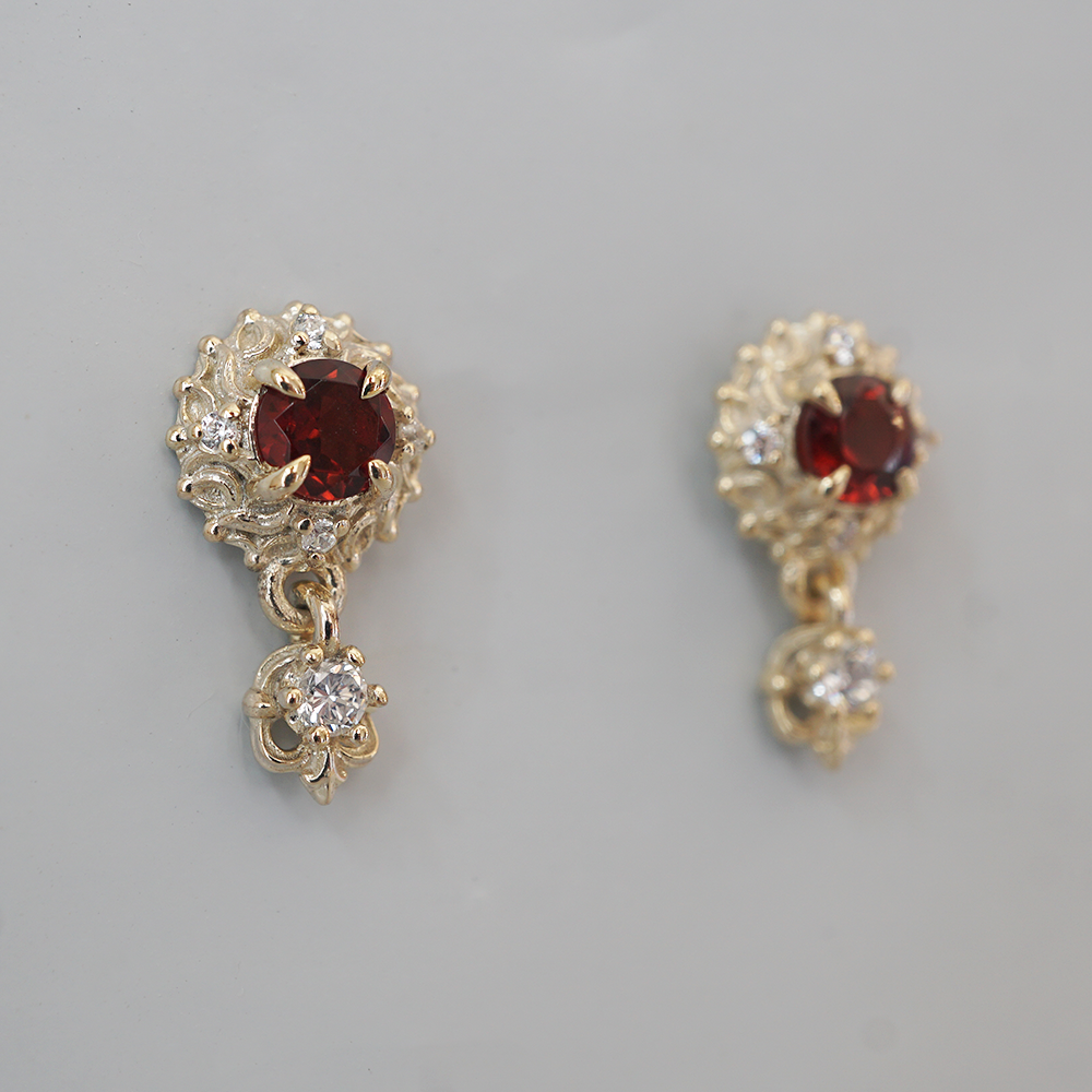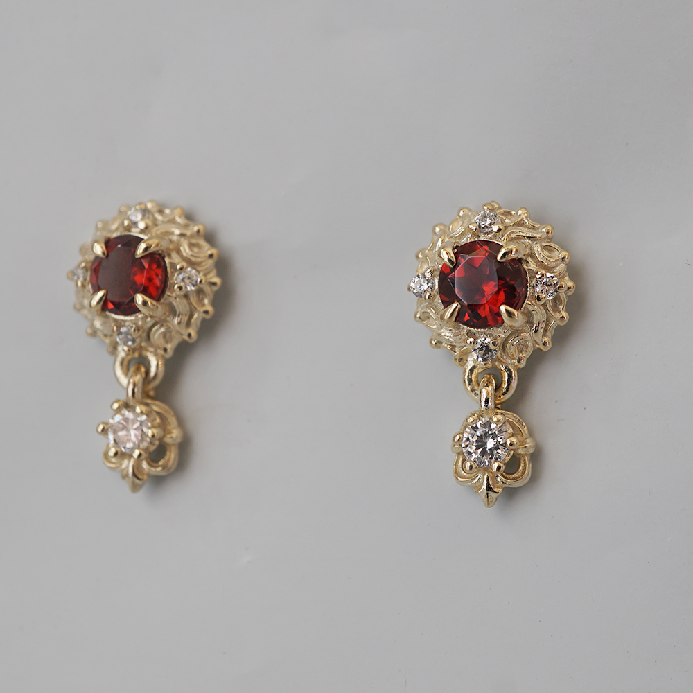 One Of A Kind: Amaranthe Garnet Studs in 14K and 18K Gold -