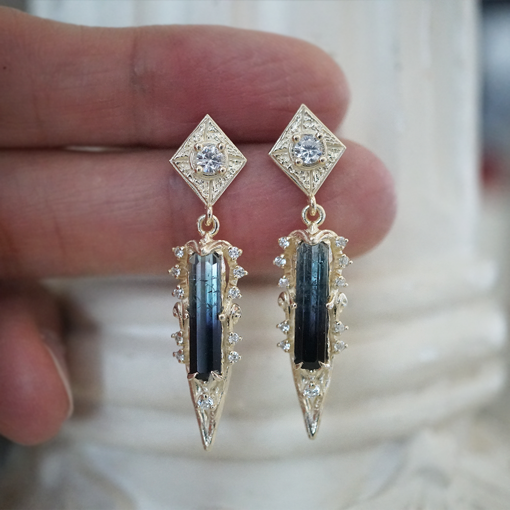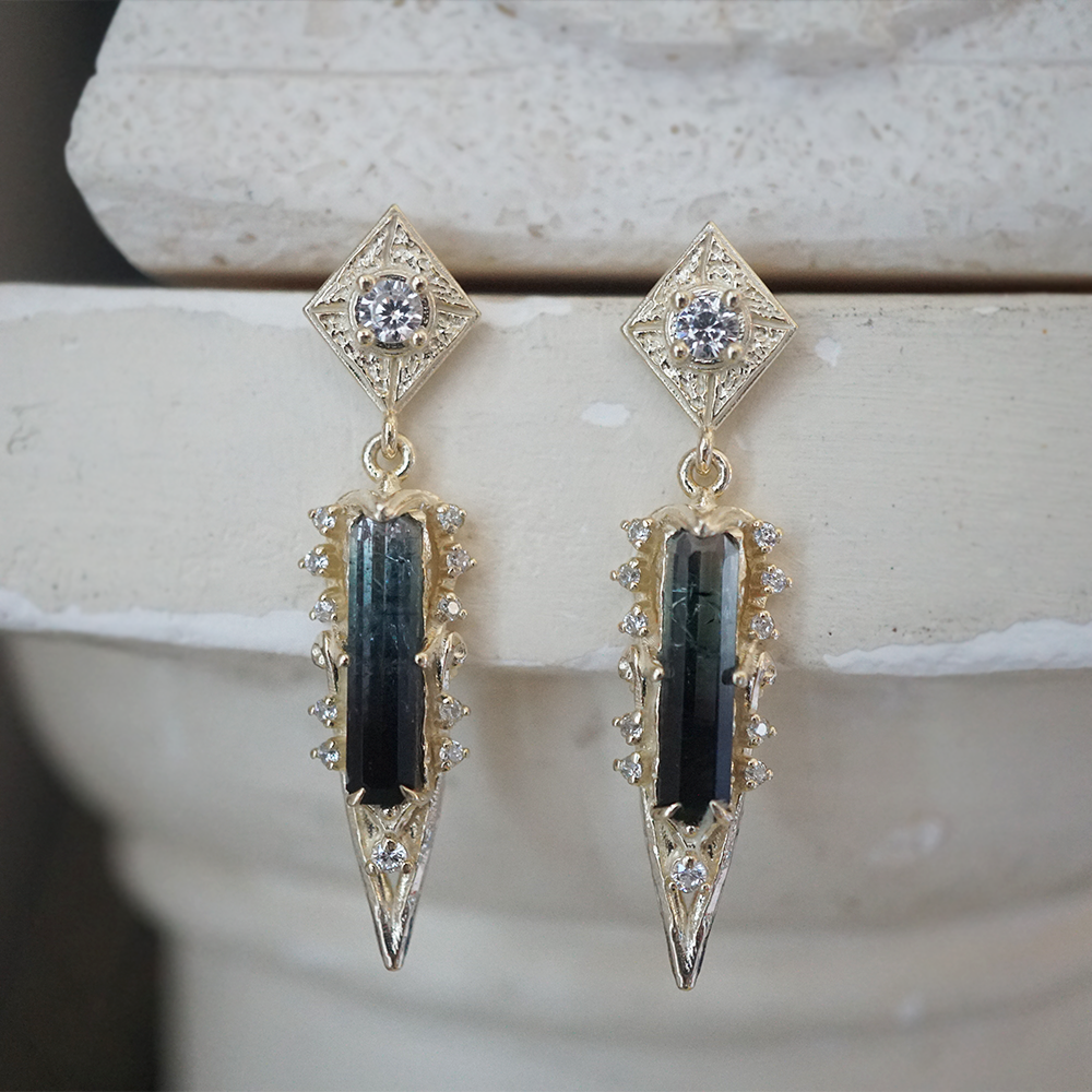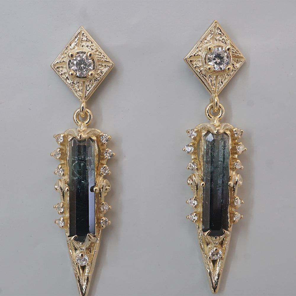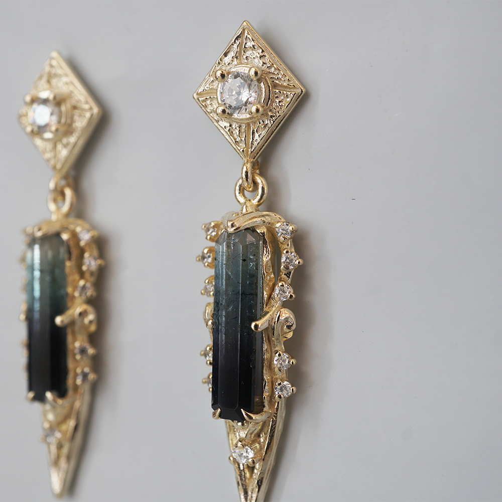 One Of A Kind: Thornspell Bi-Color Tourmaline Drops in 14K and 18K Gold