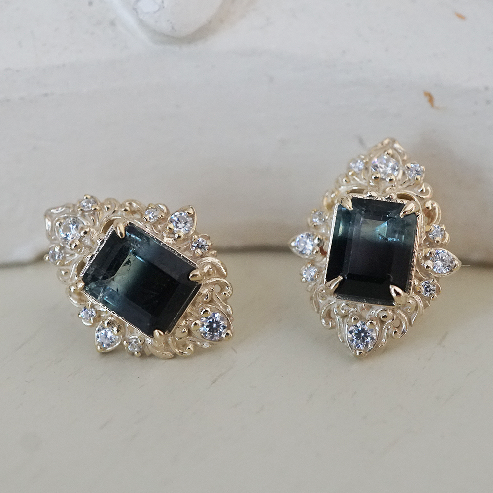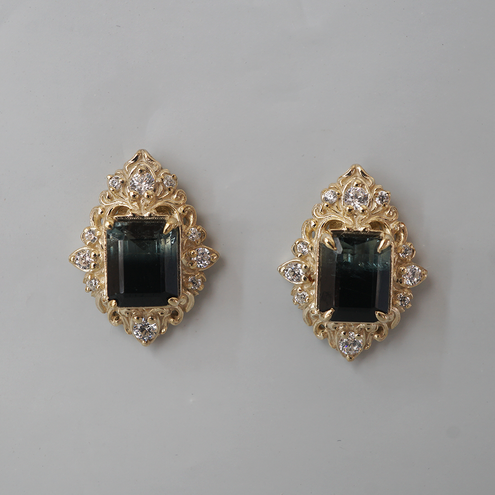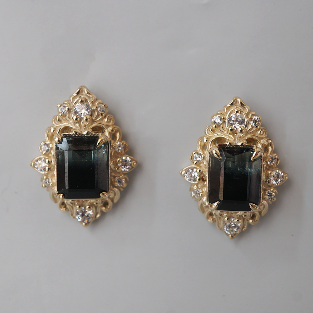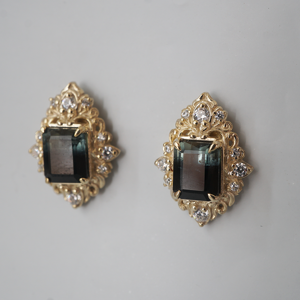 One Of A Kind: Bicolor Tourmaline Nightveil Earrings in 14K and 18K Gold