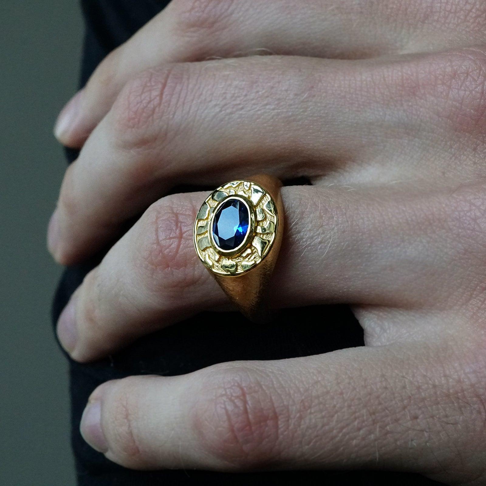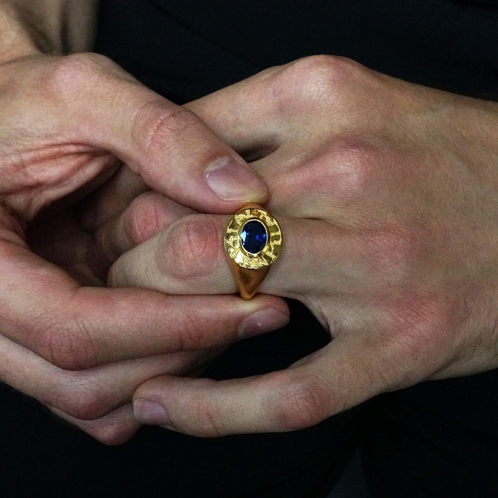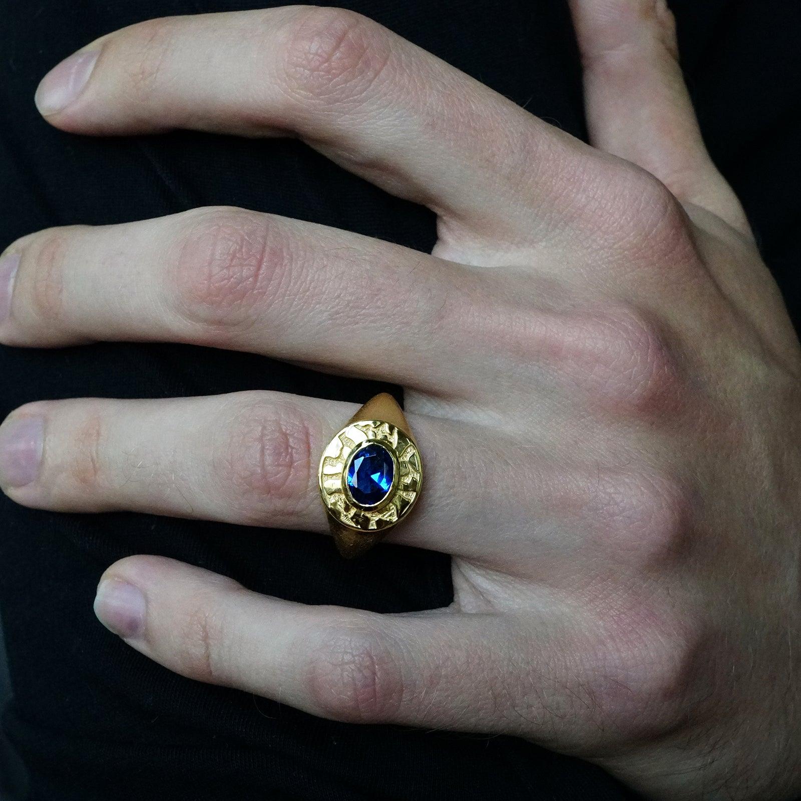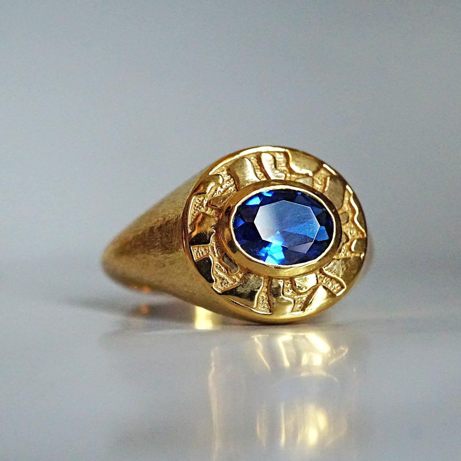 Inspired by the rugged beauty of mountain stone, the Blue Sapphire Rock Signet Ring embodies strength, depth, and individuality. A natural blue sapphire sits at its center, its rich hue evoking glacial waters and hidden depths.