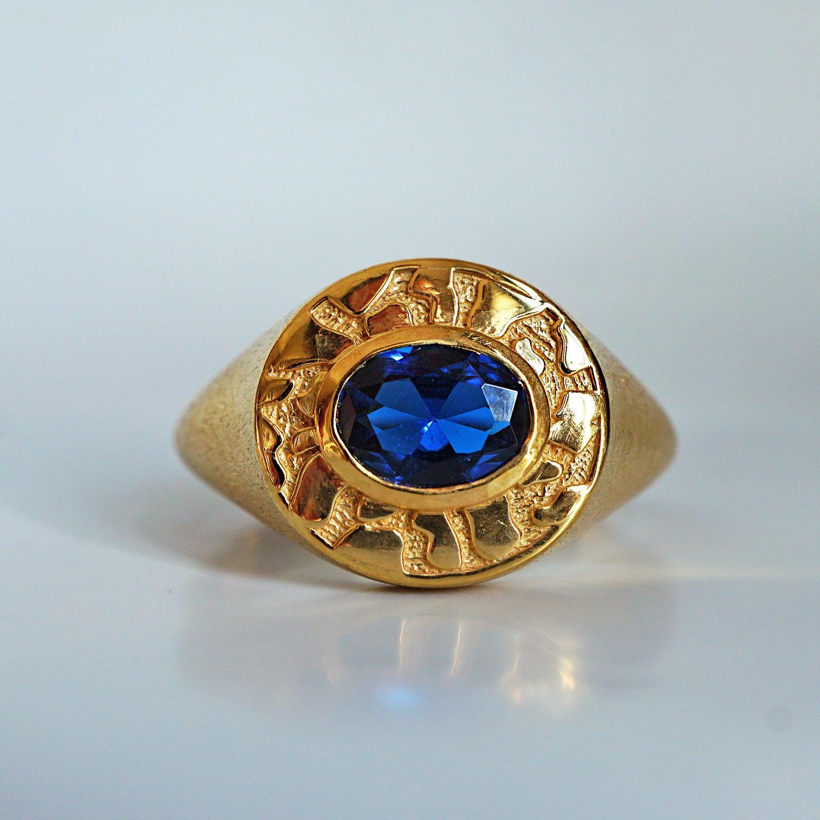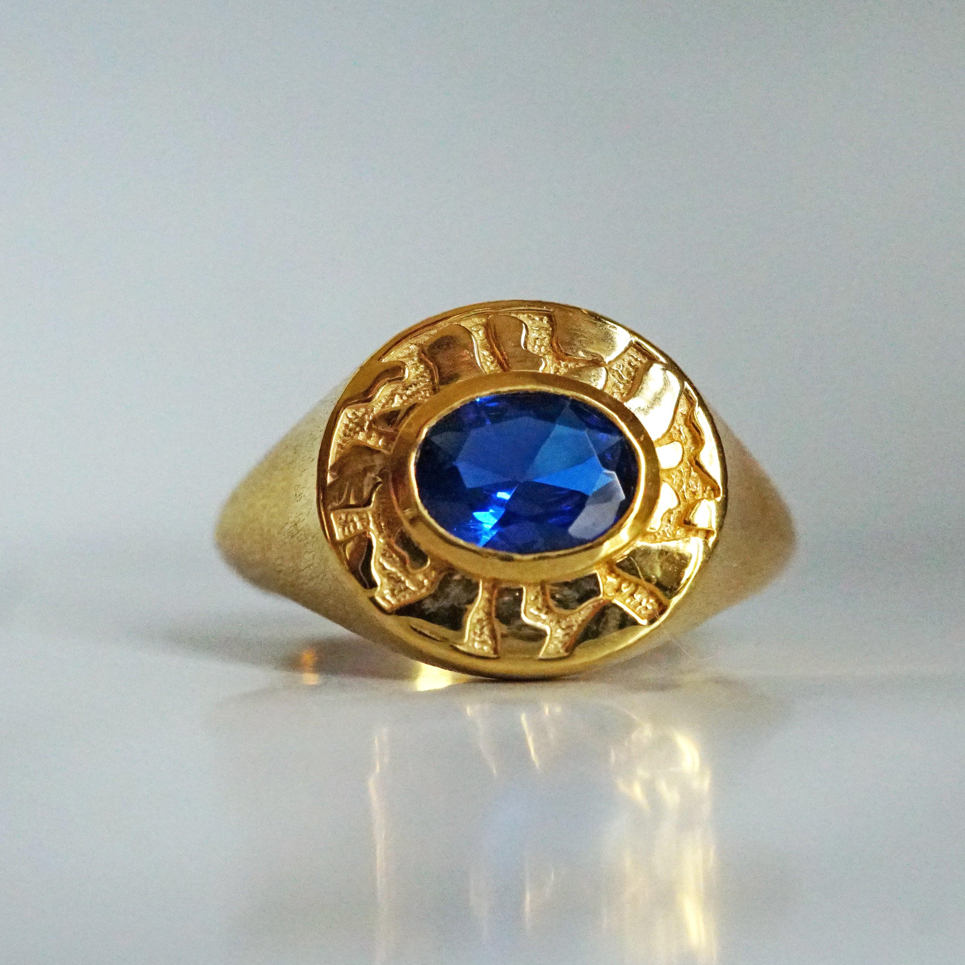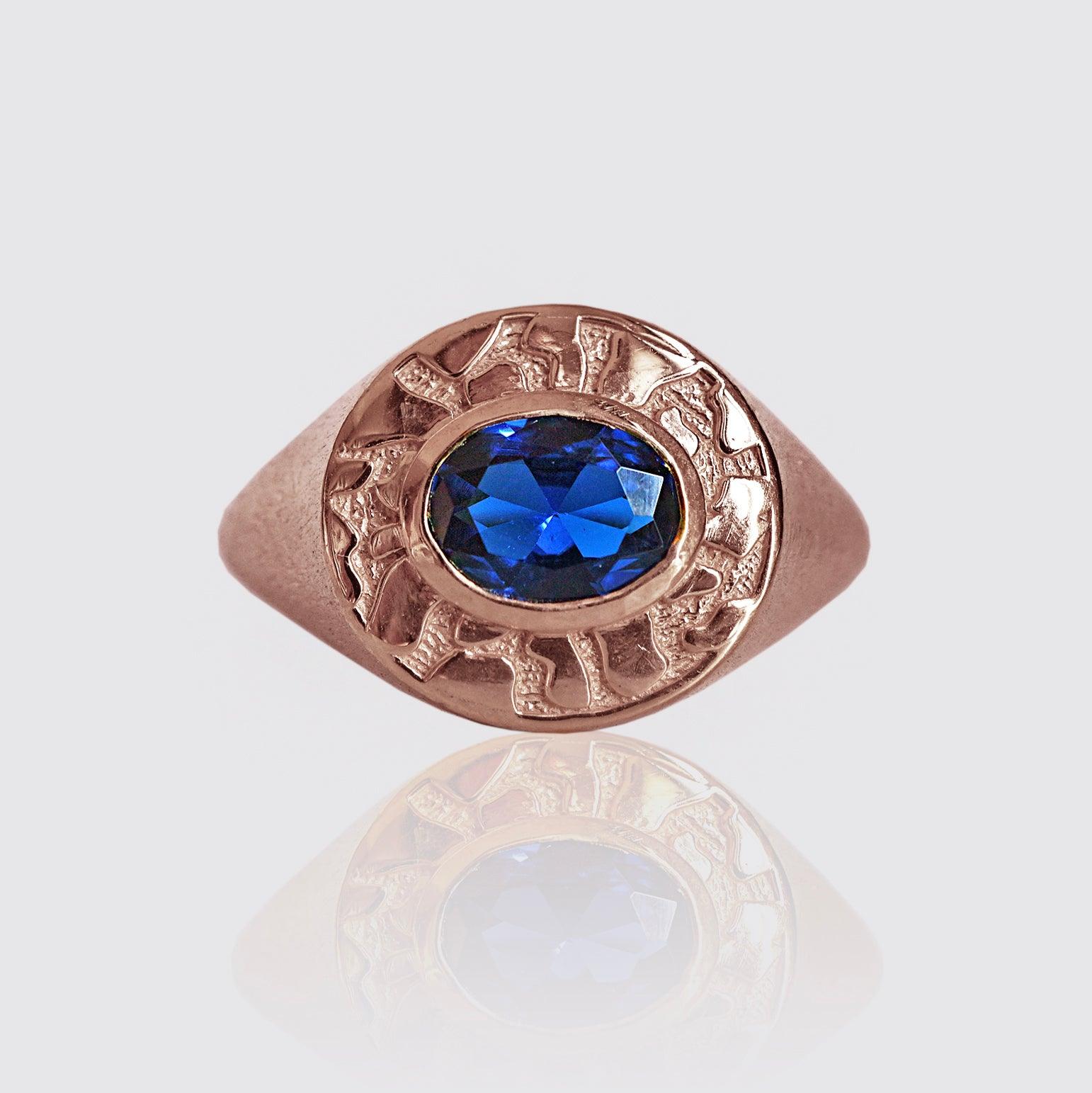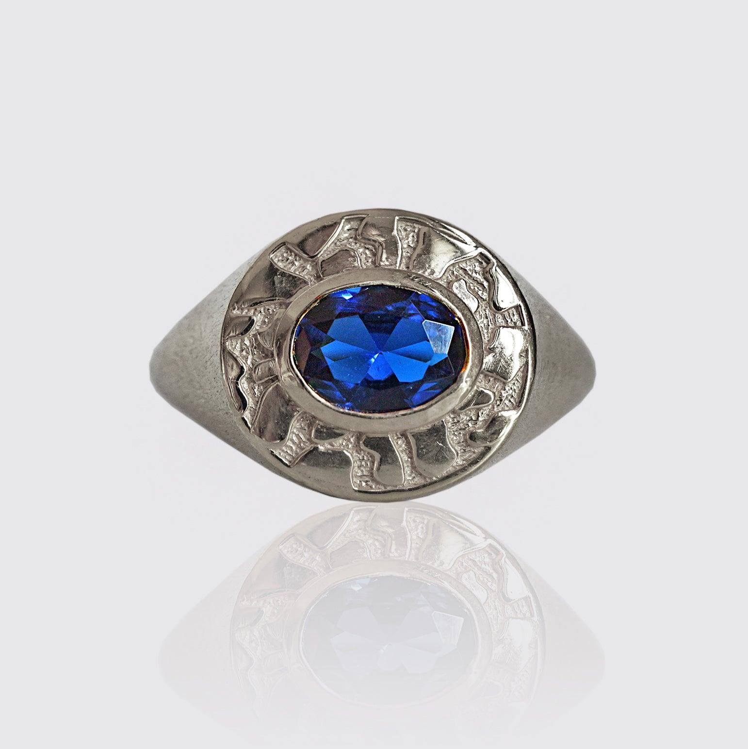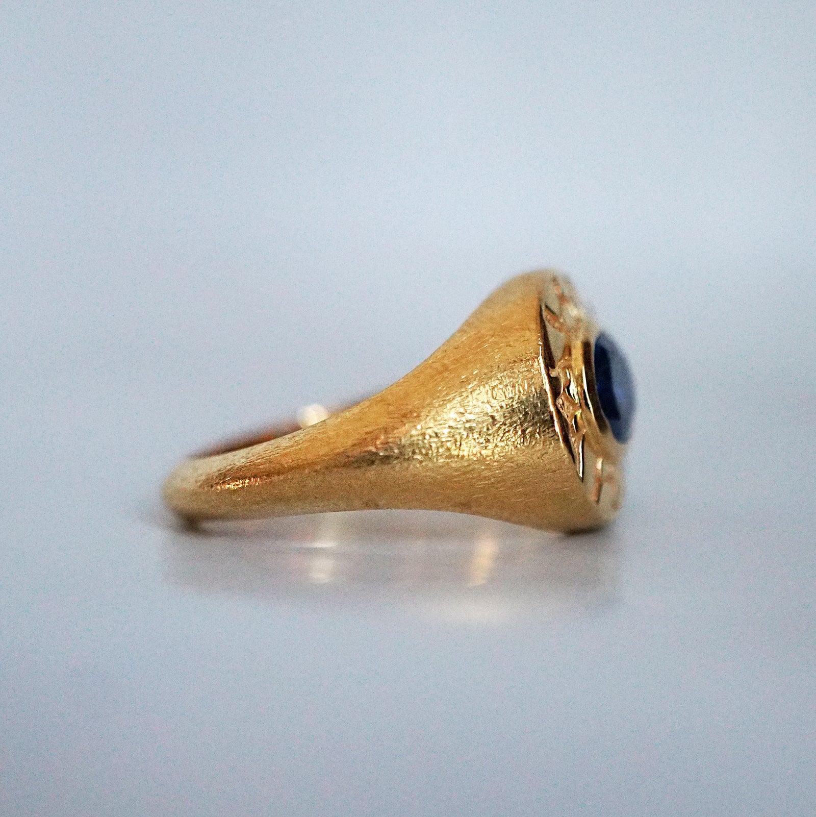 Inspired by the rugged beauty of mountain stone, the Blue Sapphire Rock Signet Ring embodies strength, depth, and individuality. A natural blue sapphire sits at its center, its rich hue evoking glacial waters and hidden depths.