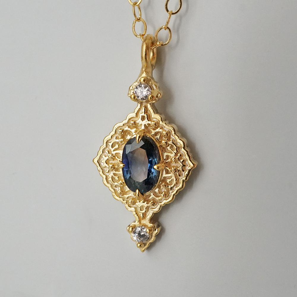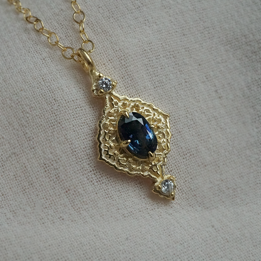 Cairo Blossom Blue Sapphire Necklace in 14K Gold