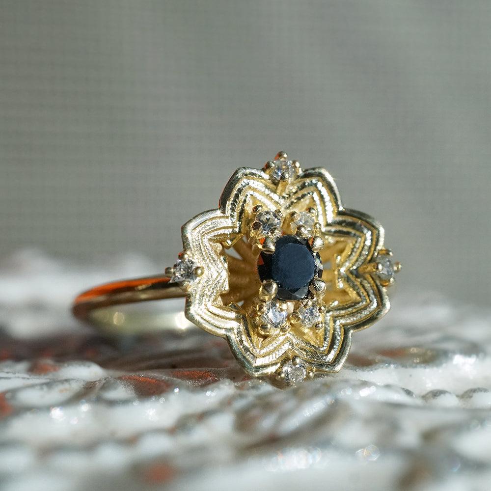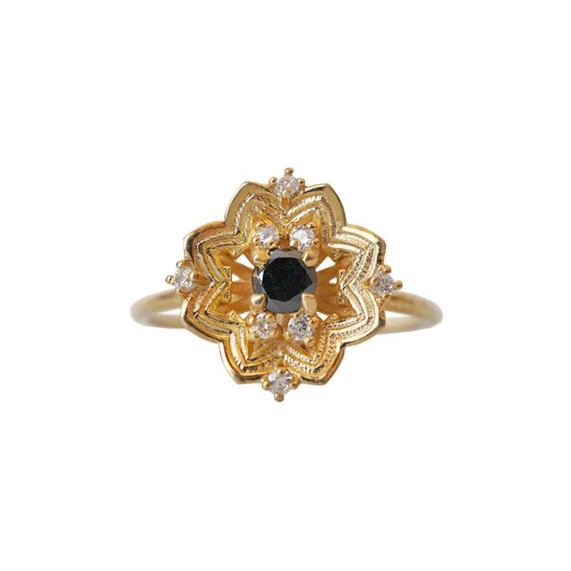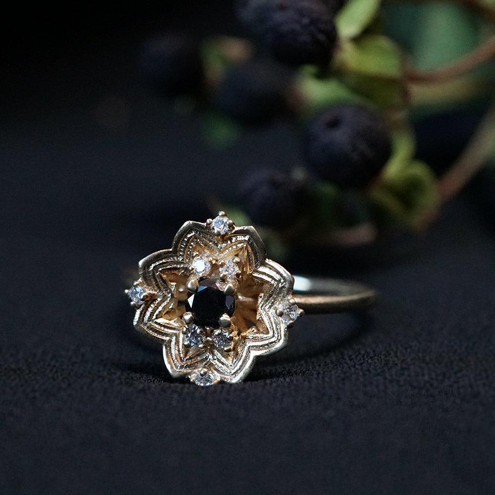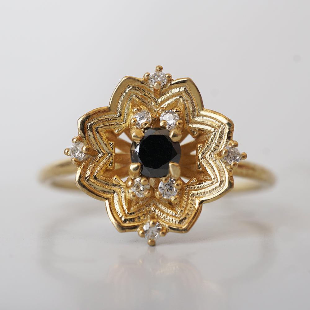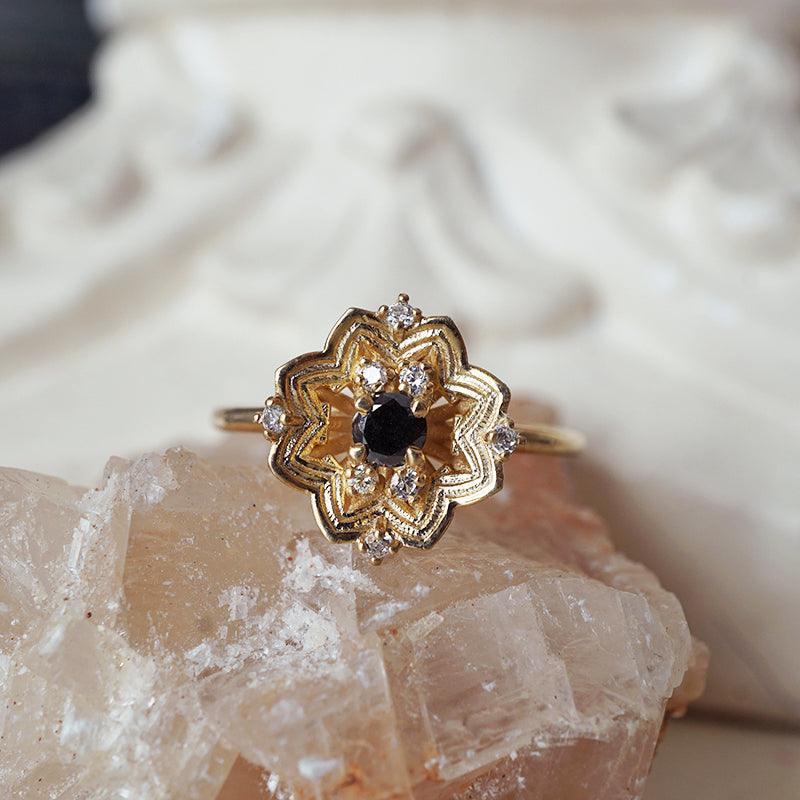 Gothic Rose Window Black Diamond Ring in 14K and 18K Gold