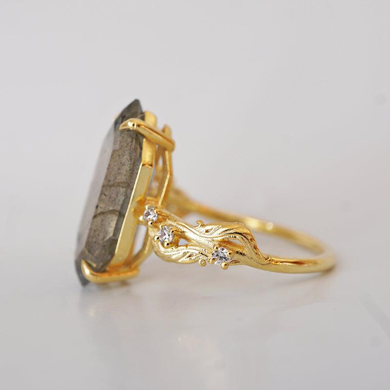 Handcrafted in your choice of 14K or 18K solid gold, this ring is a piece for those drawn to shadow, shimmer, and old-world artistry. A quiet statement that transforms with every movement and every light.