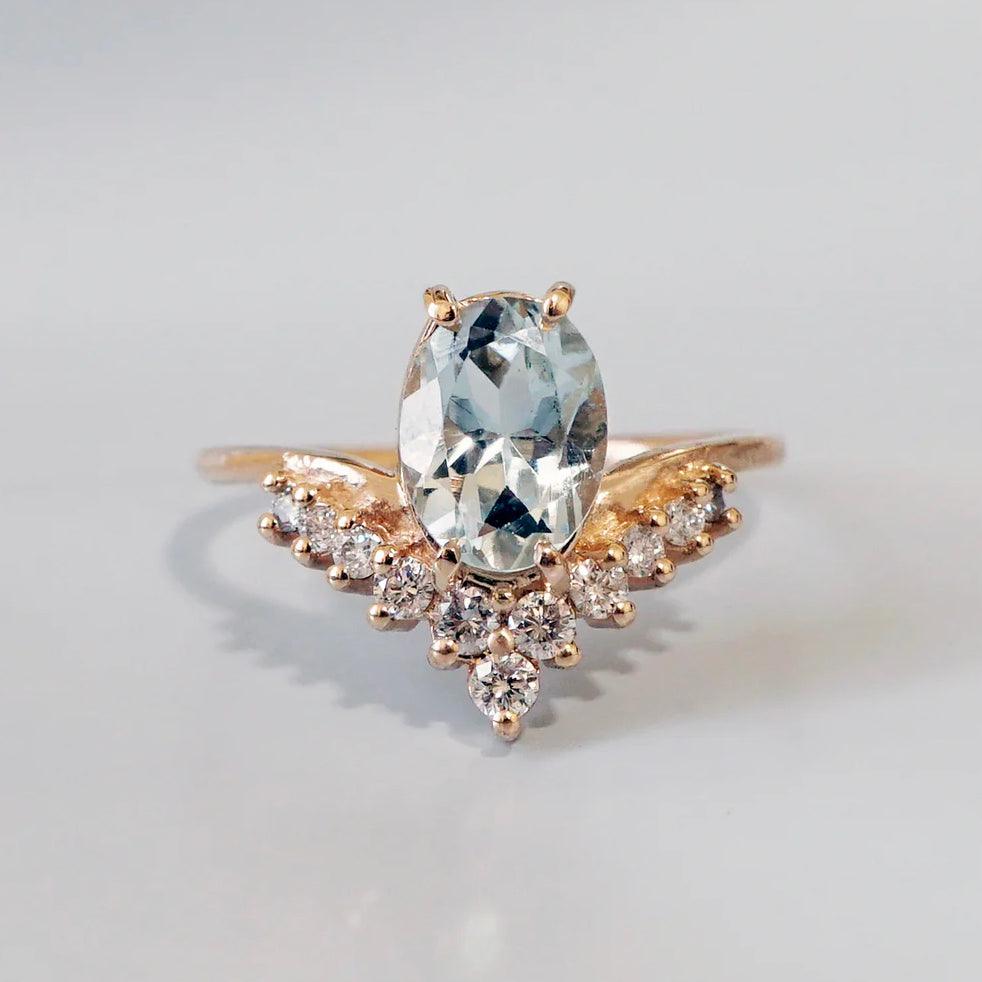 14K Aries Horoscope Birthstone Ring (Diamond + Aquamarine)