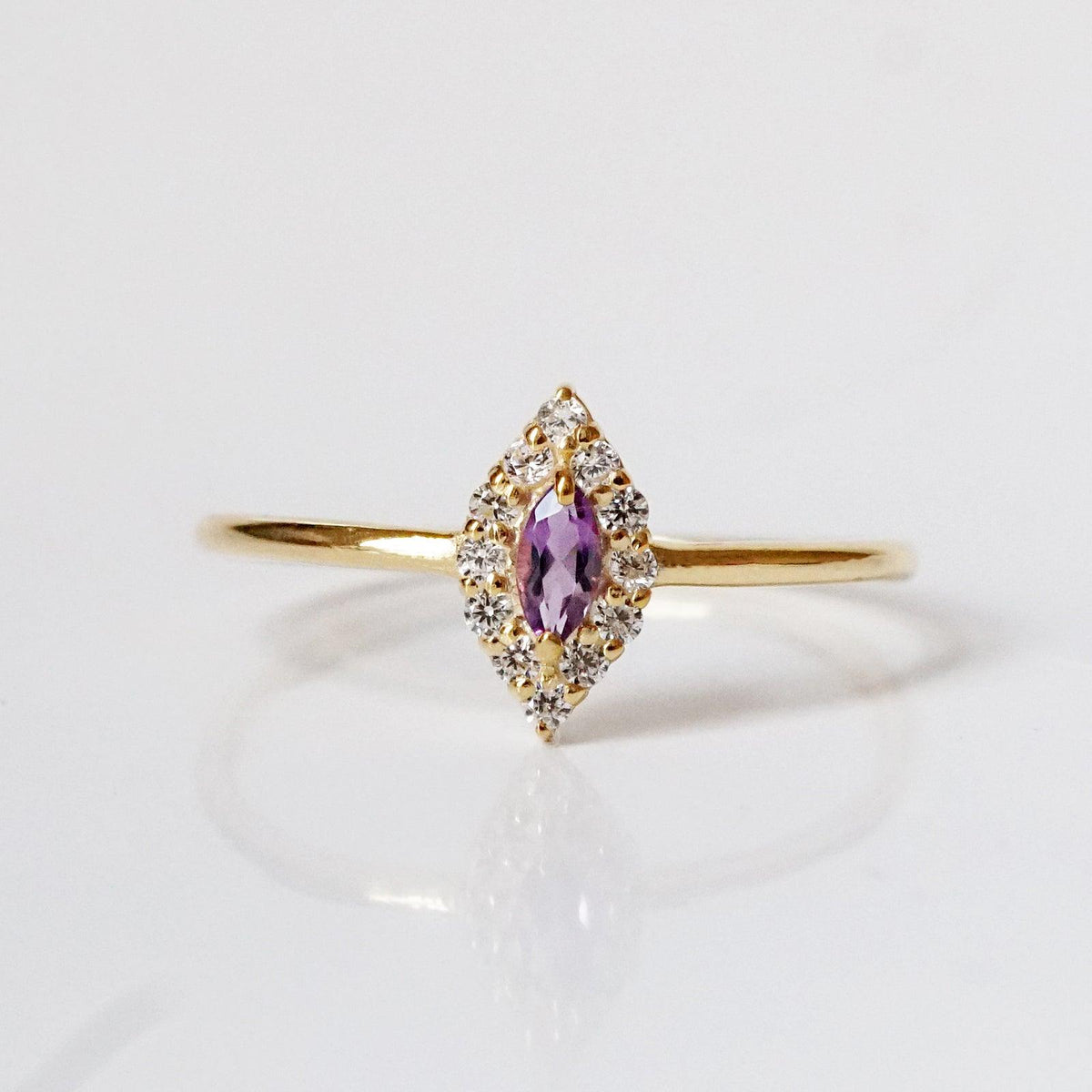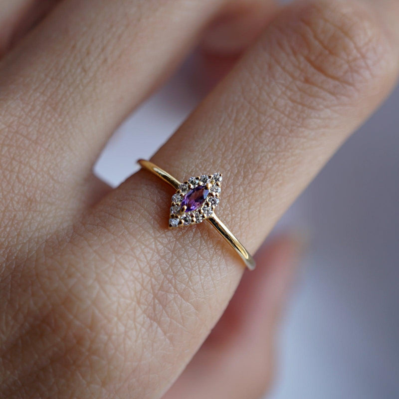 14K Aquarius Horoscope Birthstone Ring (Amethyst + Garnet) -
