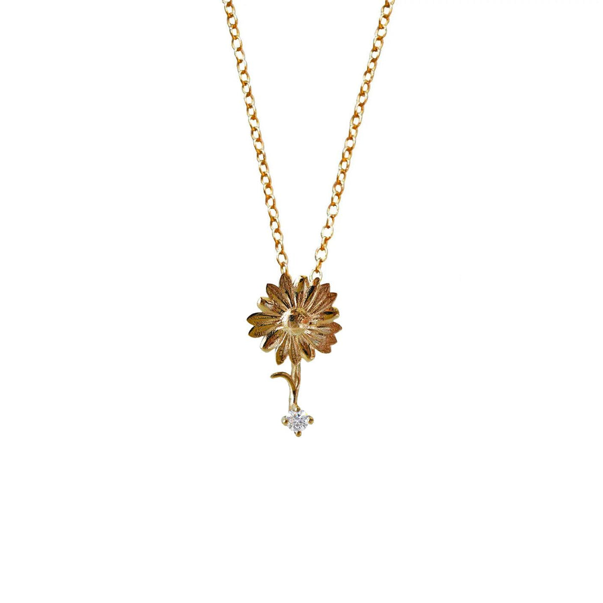 14K Aries Horoscope Birthstone Necklace (Diamond + Aquamarine)