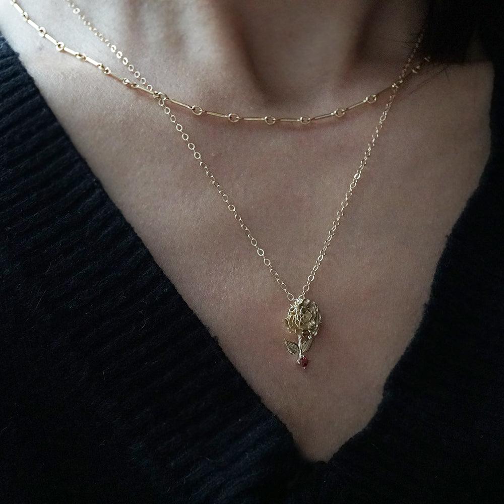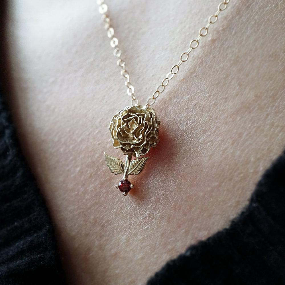 This pendant features a delicately sculpted carnation paired with a natural garnet birthstone, adding a rich touch of warmth and color. Thoughtful, timeless, and easy to wear, it’s a beautiful piece that celebrates both identity and sentiment.