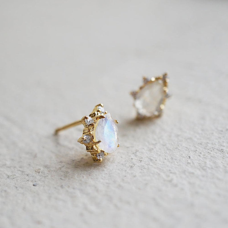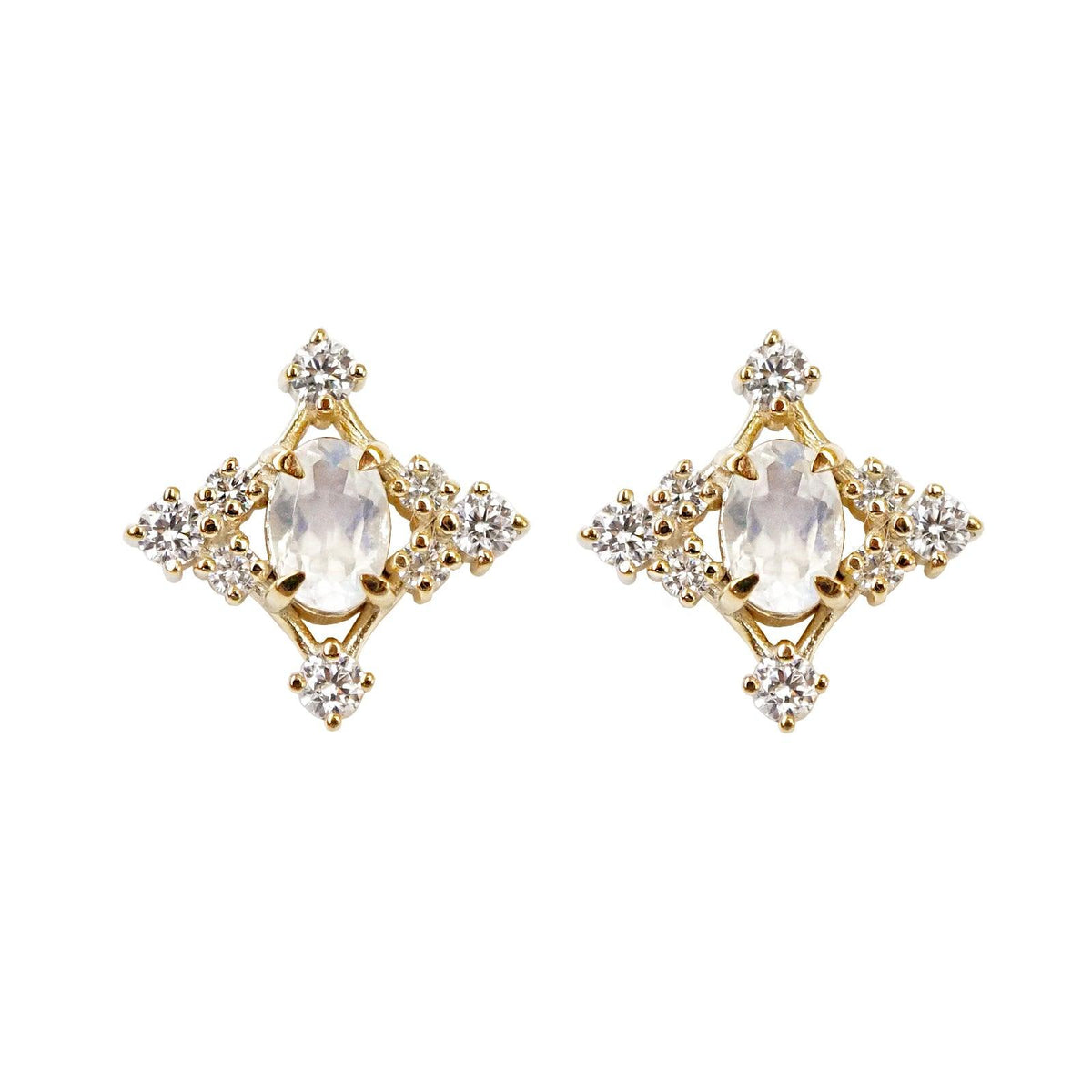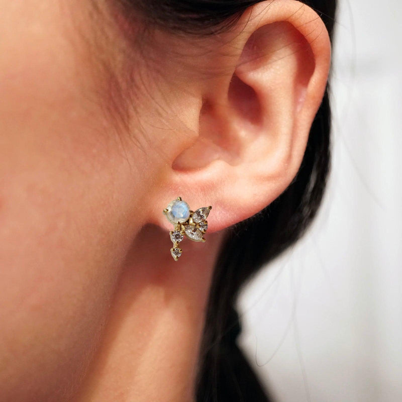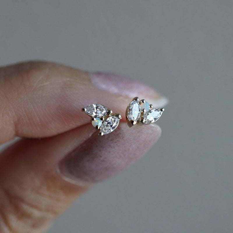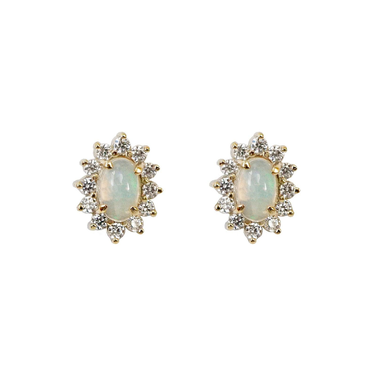 Opal Flowerburst Diamond Studs in 14K and 18K Gold -