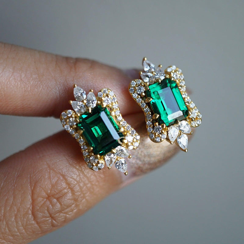 Willow Crown Emerald Studs in 14K and 18K Gold -