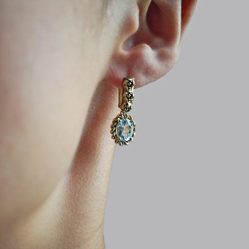 Jardin Blue Sapphire Studs in Sterling Silver and 14K Gold -