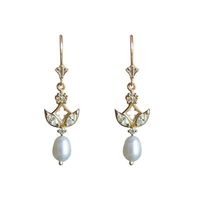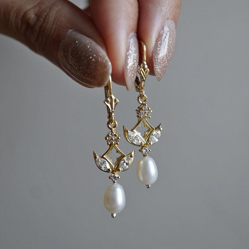 Acanthus Pearl Studs in 14K, 18K Gold and Platinum -