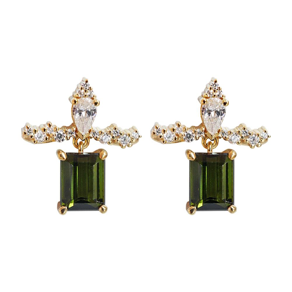 One Of A Kind: Bicolor Tourmaline Nightveil Earrings in 14K and 18K Gold