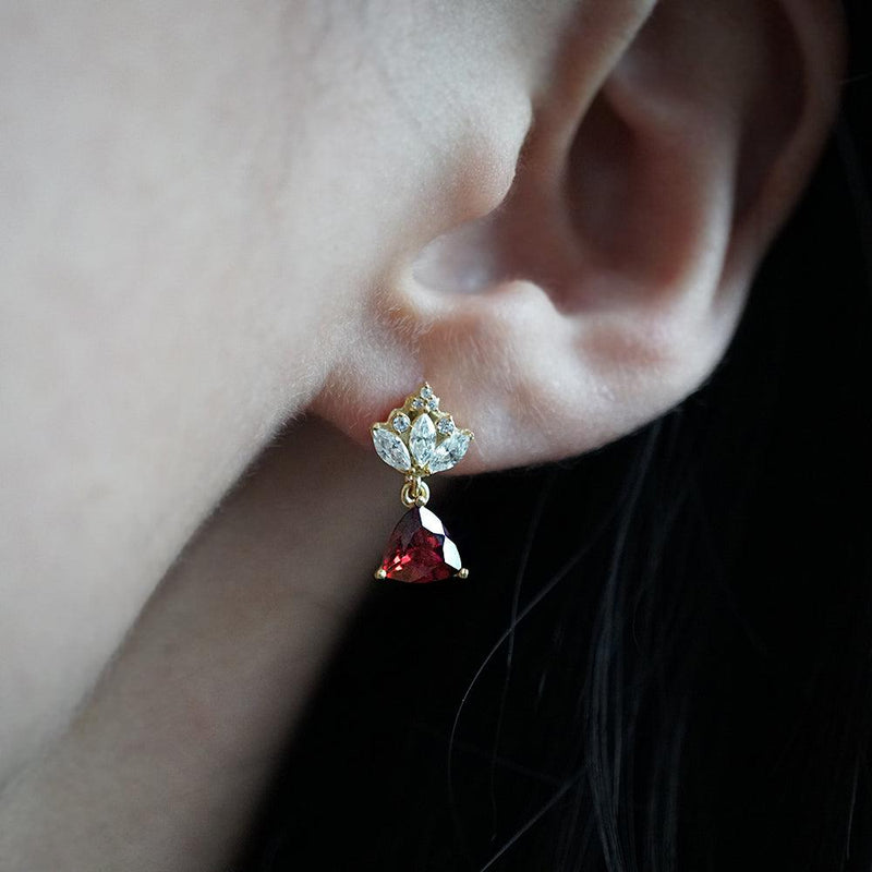 One Of A Kind: Amaranthe Garnet Studs in 14K and 18K Gold