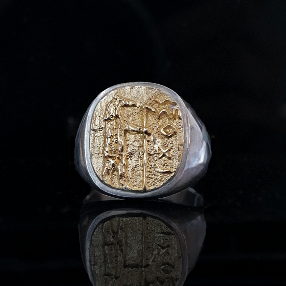 Mixed Metal Anubis Signet Ring in Sterling Silver and 14K Gold