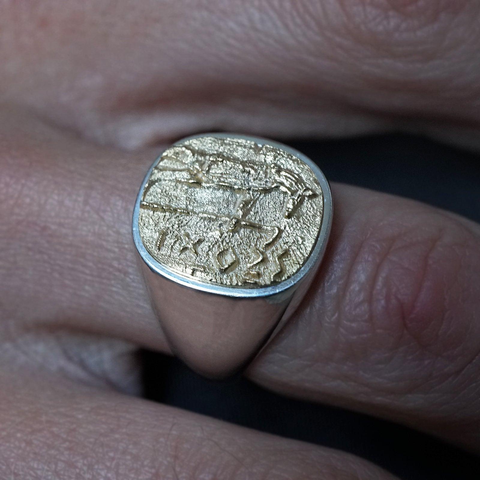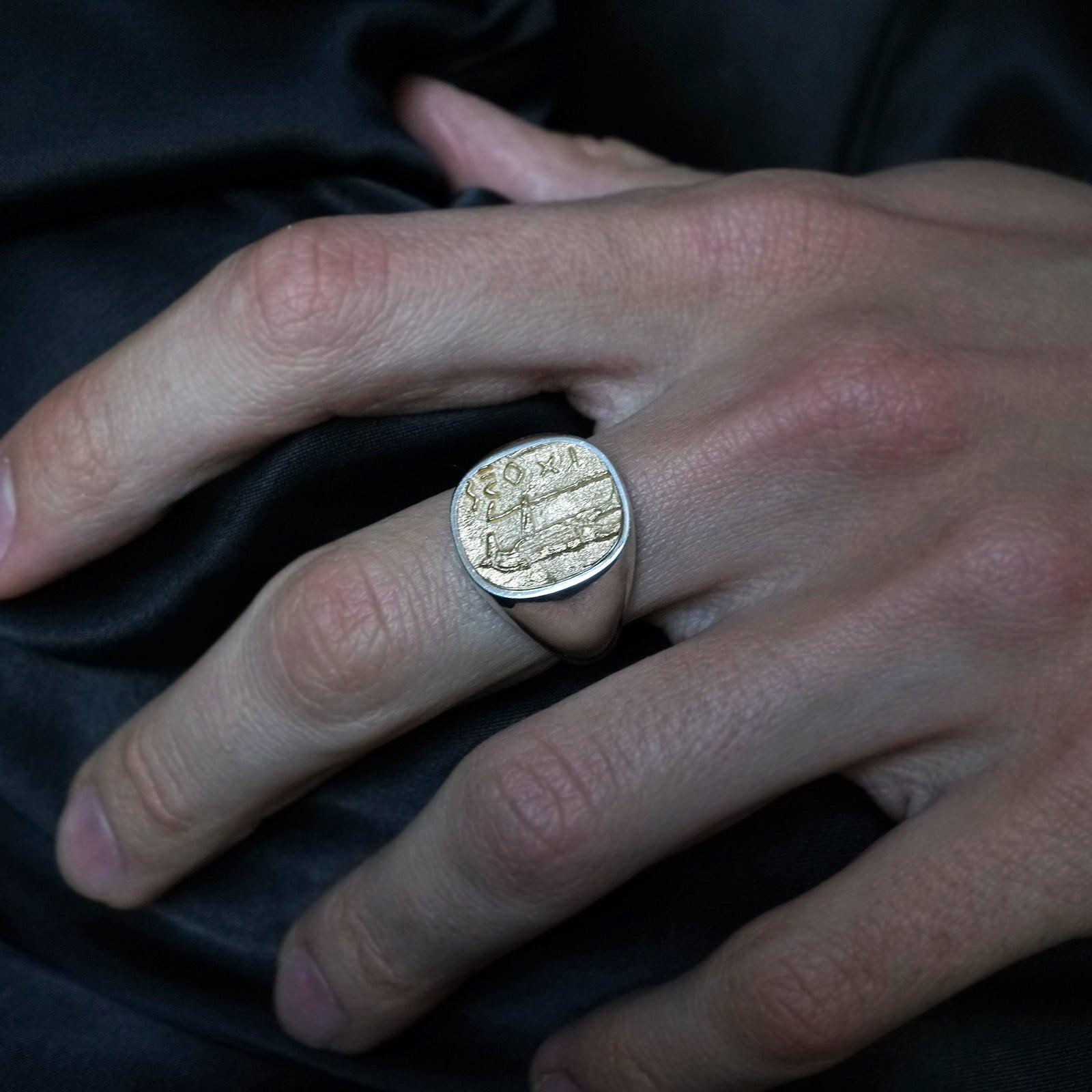 Mixed Metal Anubis Signet Ring in Sterling Silver and 14K Gold - Tippy Taste Jewelry