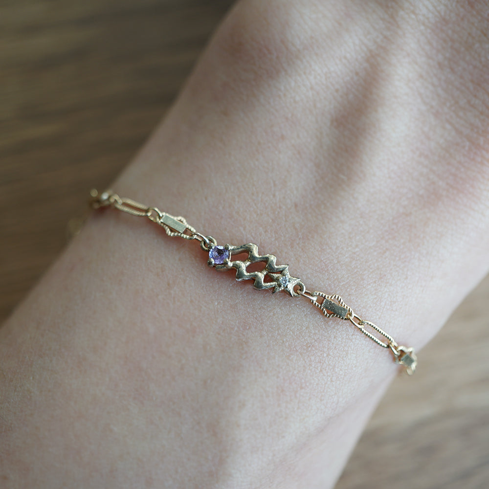 14K Aquarius Horoscope Birthstone Bracelet (Amethyst + Garnet)