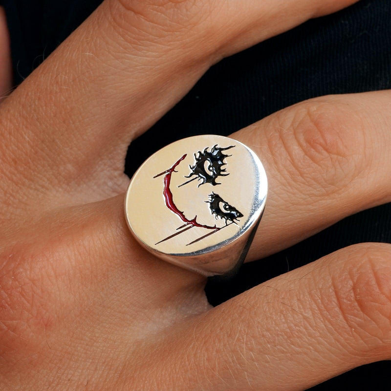 Black Onyx Bevel Ring in Sterling Silver and 14K Gold, 7mm