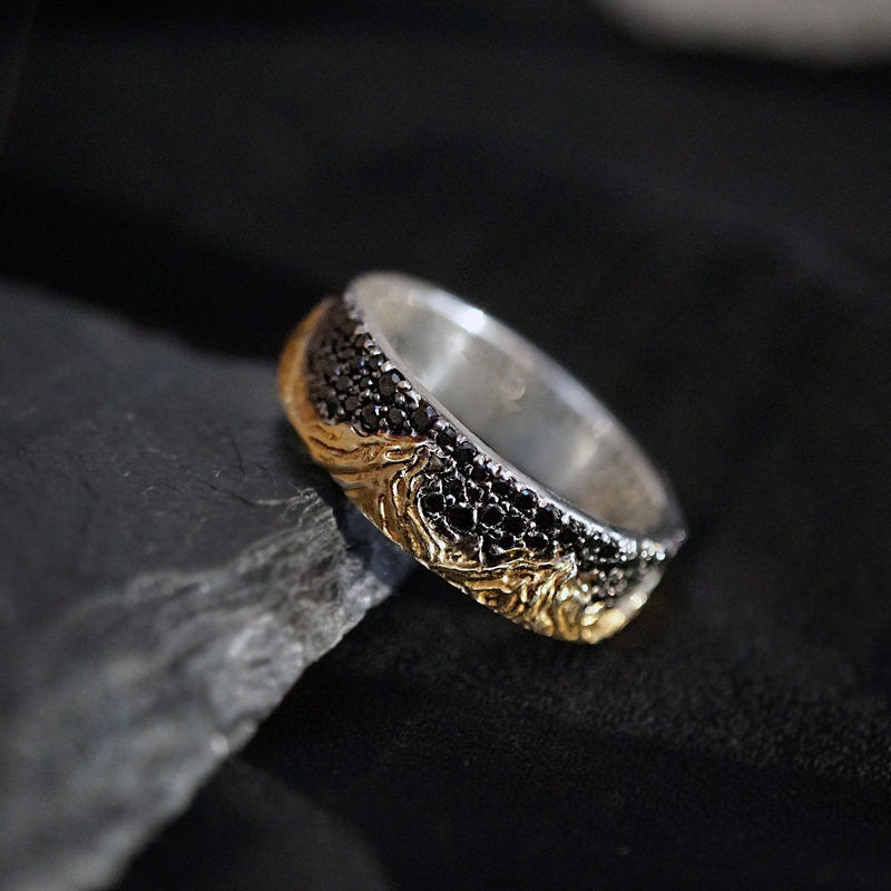 Mixed Metal Tree Branch Ring in Sterling Silver and 14K Gold, 5mm