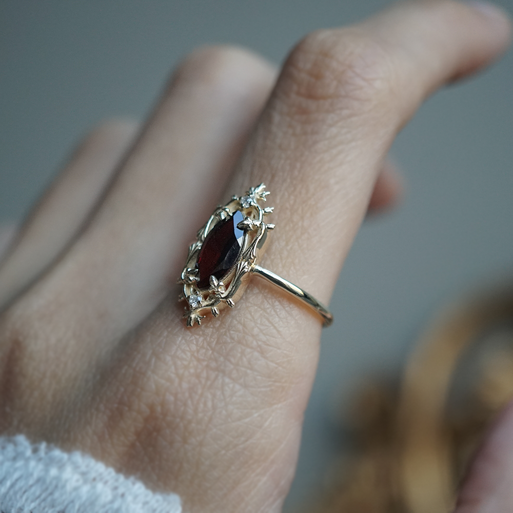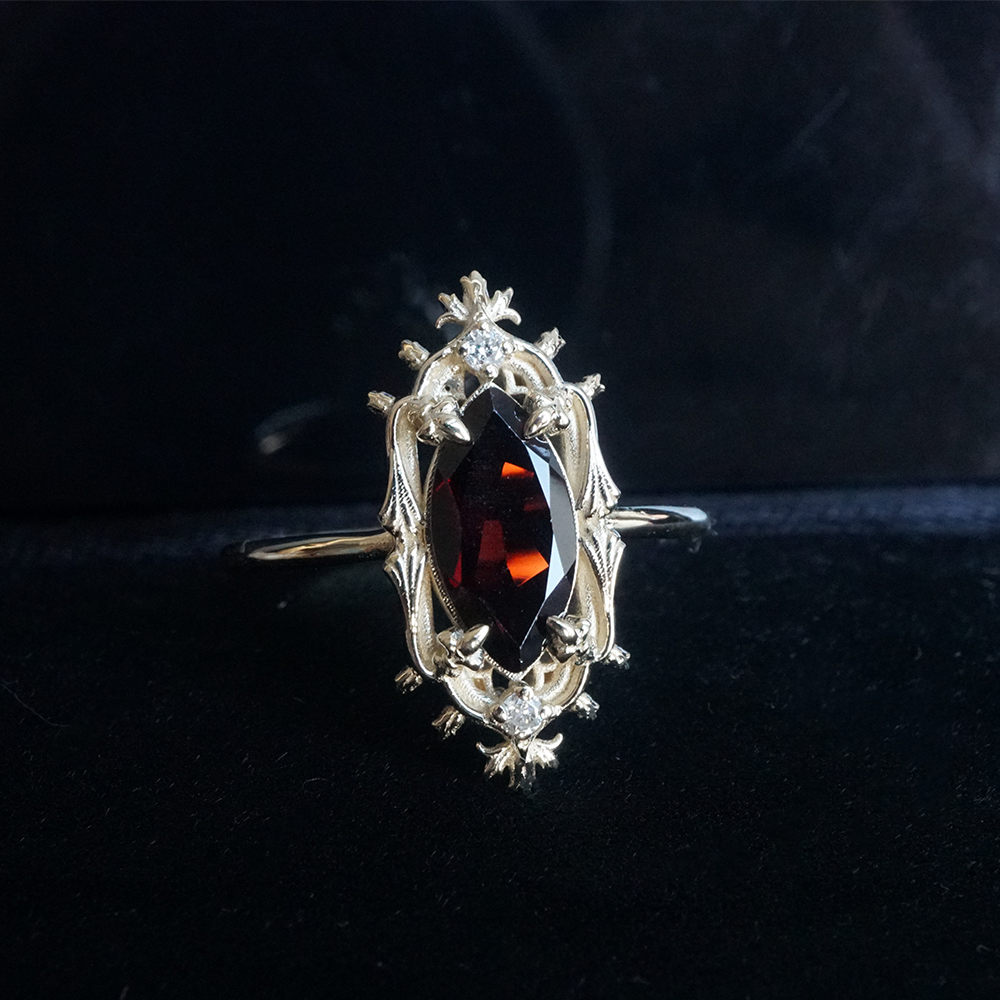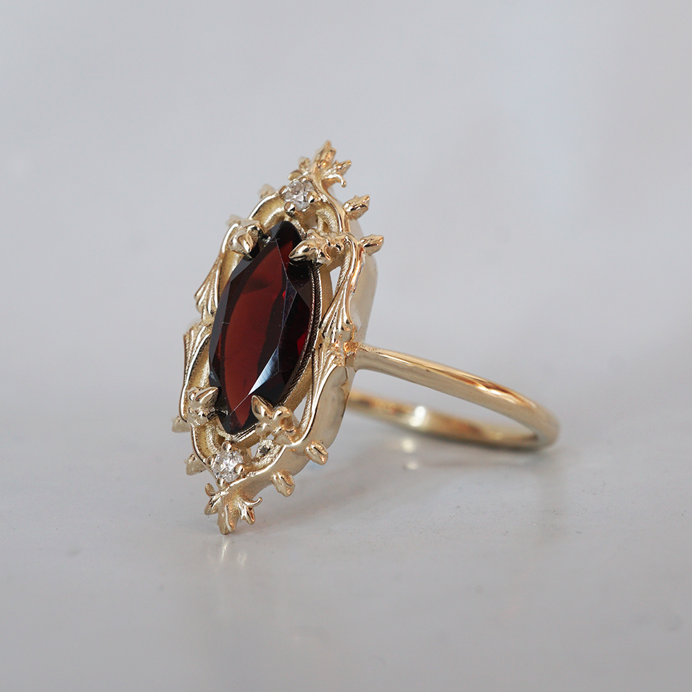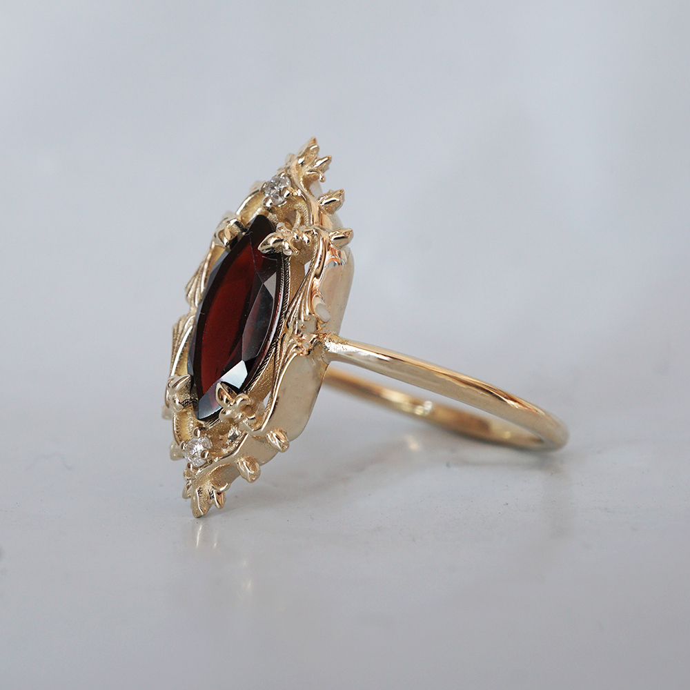 Gothic Marquise Garnet Ring in 14K and 18K Gold -
