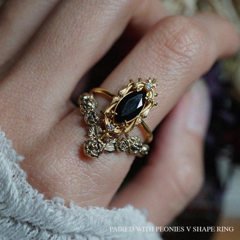 Gothic Marquise Onyx Ring in 14K and 18K Gold
