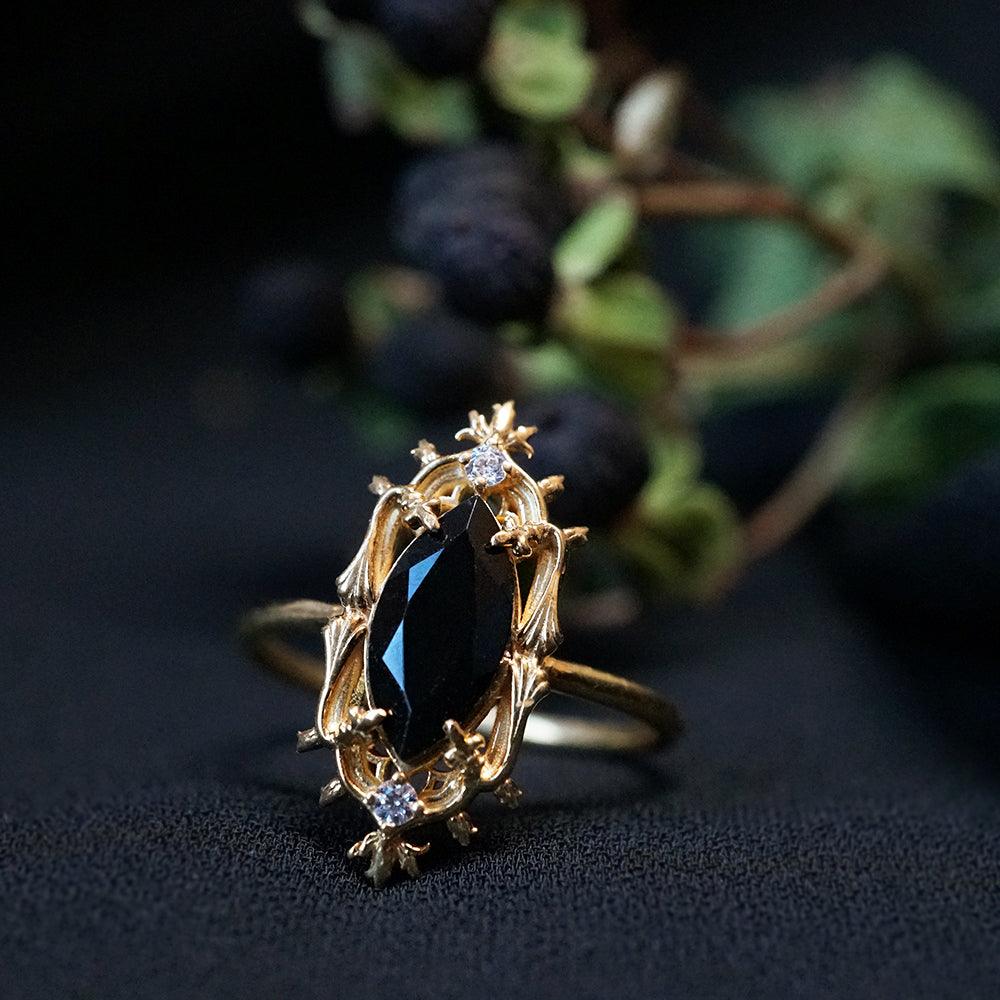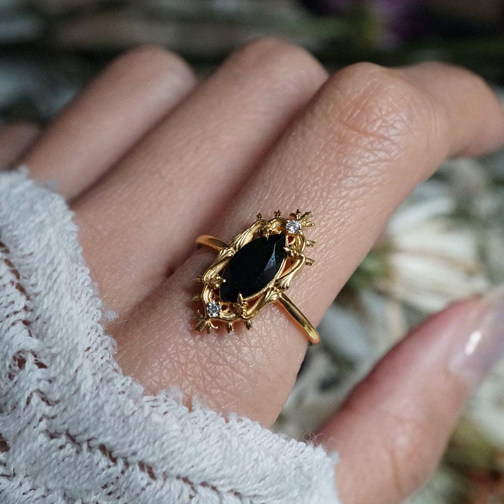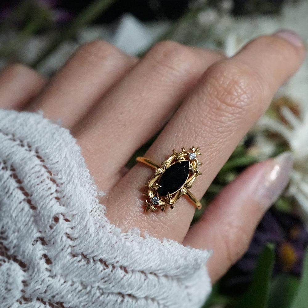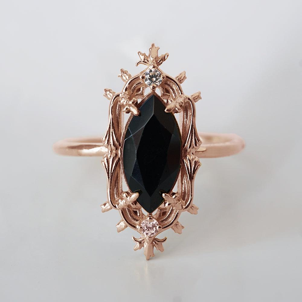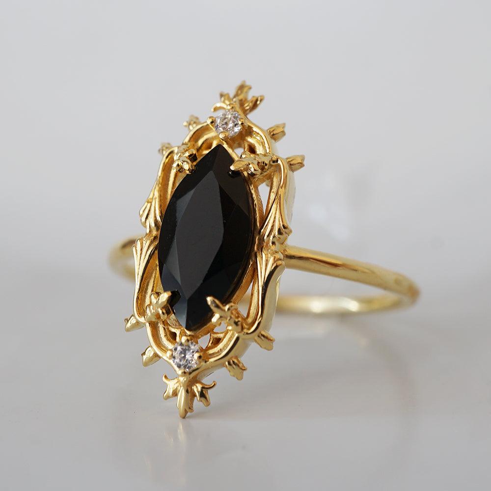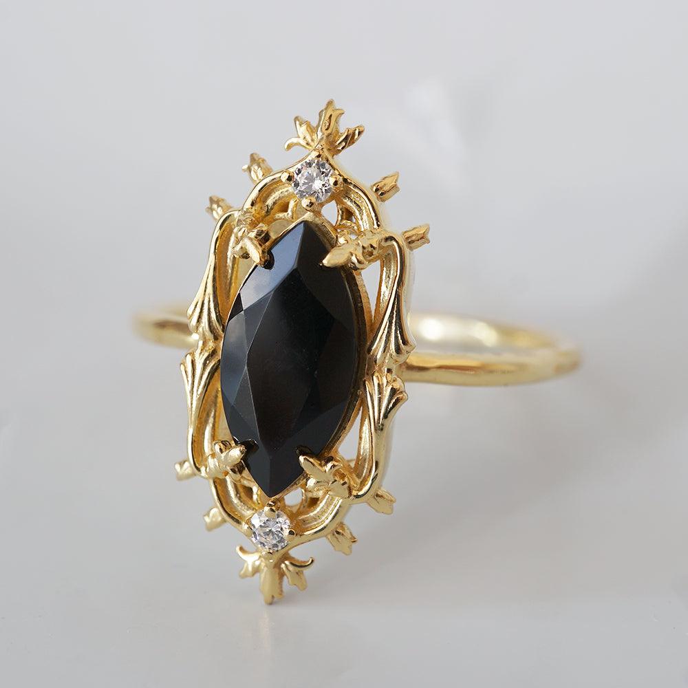 Gothic Marquise Onyx Ring in 14K and 18K Gold -