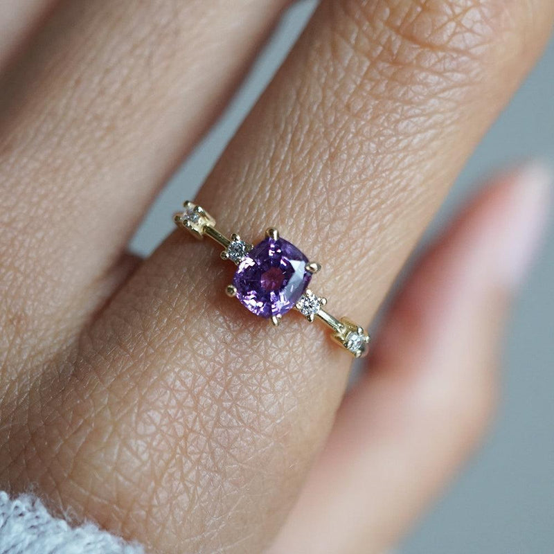 Limited Edition: Amaranthine Violet Grey Spinel Ring in 14K and 18K Gold -