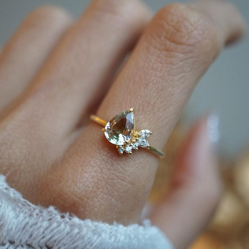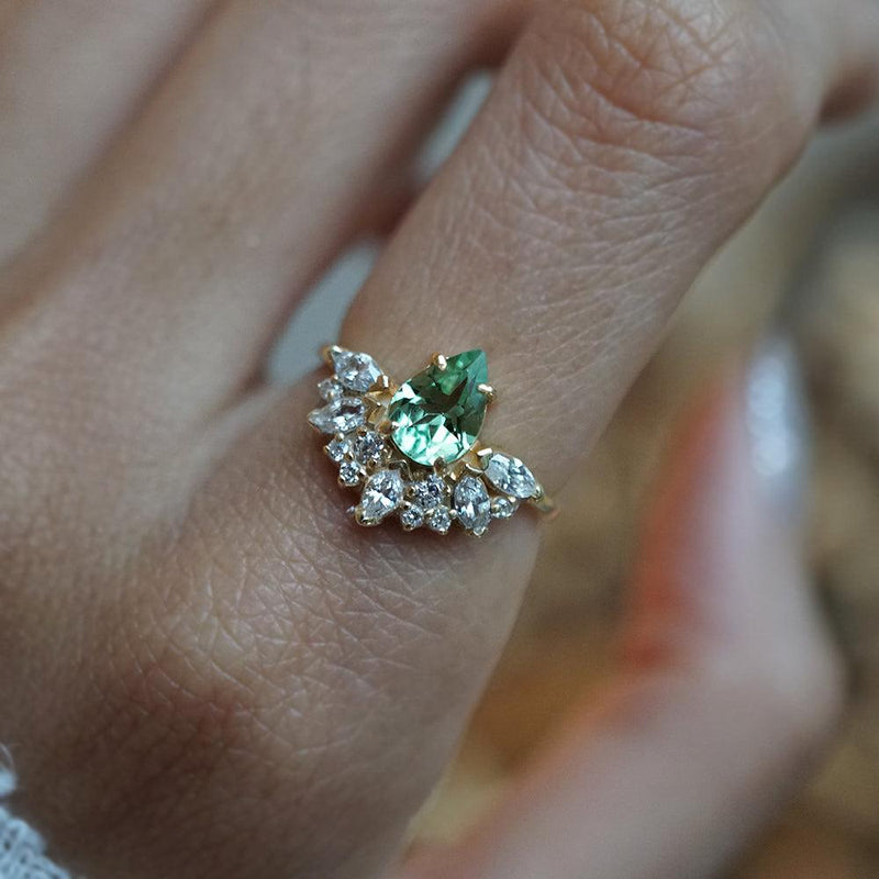 Limited Edition: Green Tourmaline Marcelline Diamond Ring in 14K and 18K Gold -