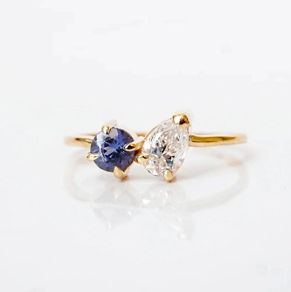 Limited Edition: Teal Sapphire Celestielle Diamond Ring in 14K and 18K Gold