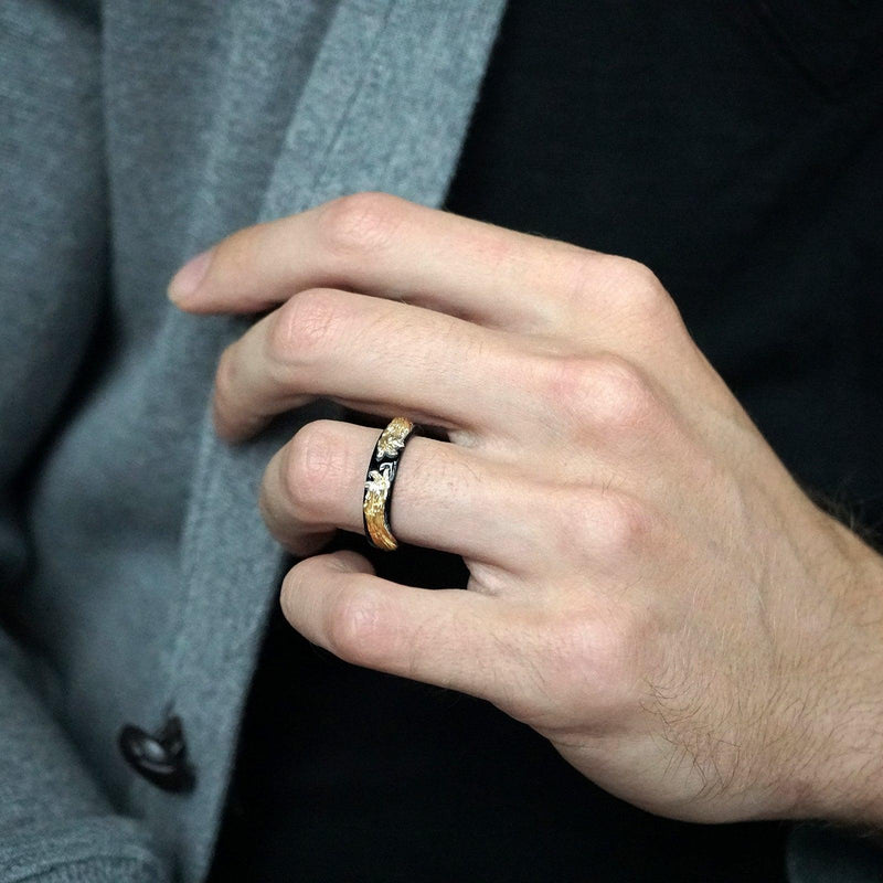 Arabesque Black Diamond Band Ring in 14K and 18K Gold, 5mm