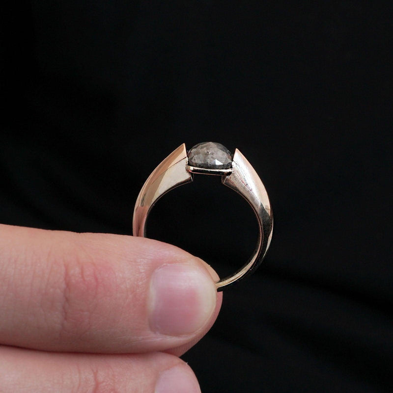 Gothic Black Diamond Ring in Sterling Silver, 14K, 18K Gold and Platinum, 5mm
