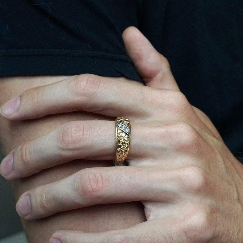 Shield Textured Ring Band in Sterling Silver and 14K Gold, 5mm