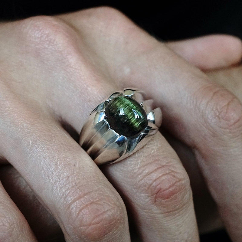 Weighty Black Rutilated Quartz Robo Ring in Sterling Silver, 13mm