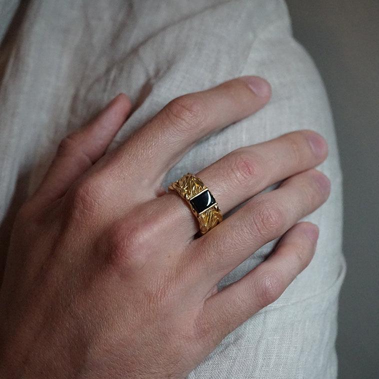 Futuristic Black Onyx Ring in 14K Gold, 11mm