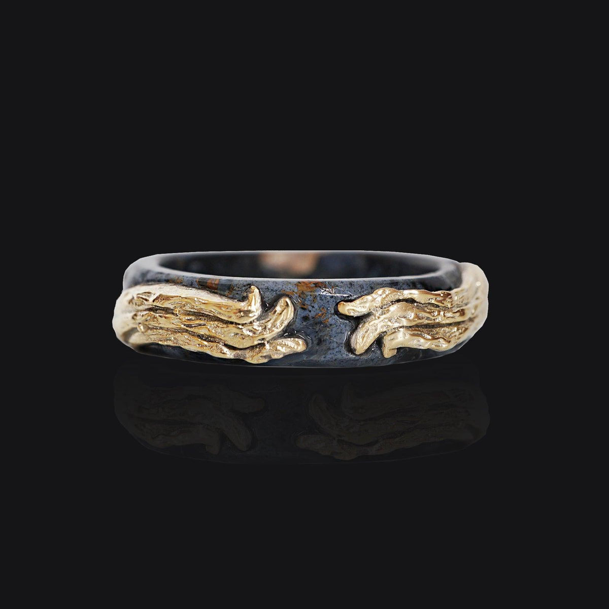 Shield Textured Ring Band in Sterling Silver and 14K Gold, 5mm -
