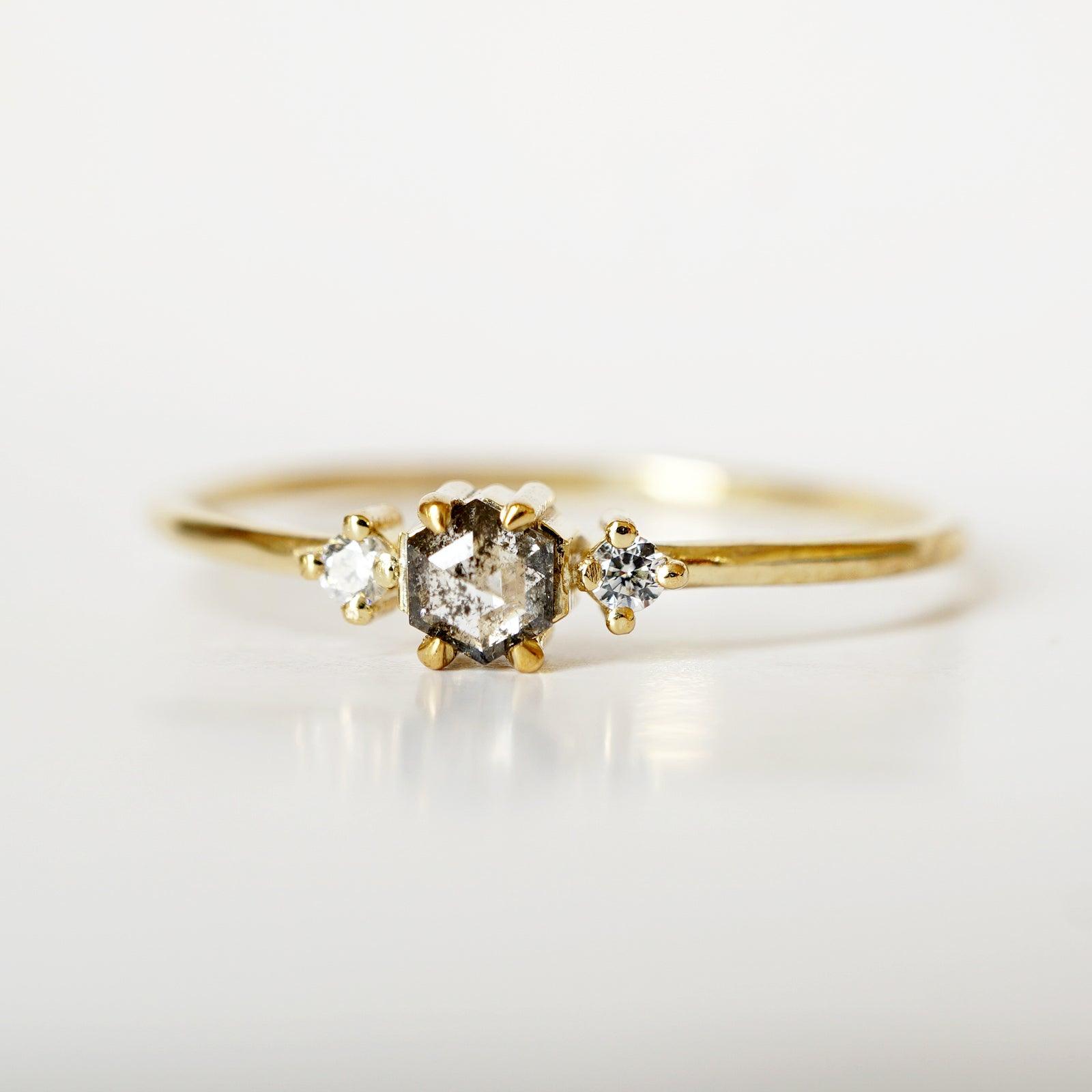 Limited Edition: Mini Hexy Salt & Pepper Ring in 14K Gold