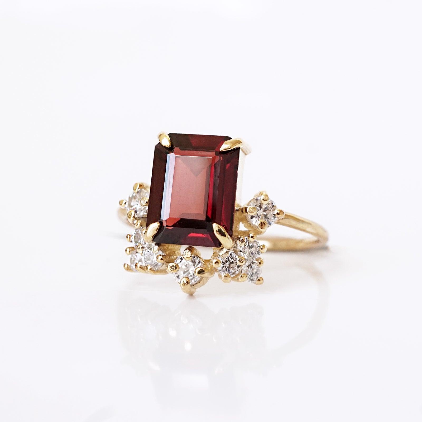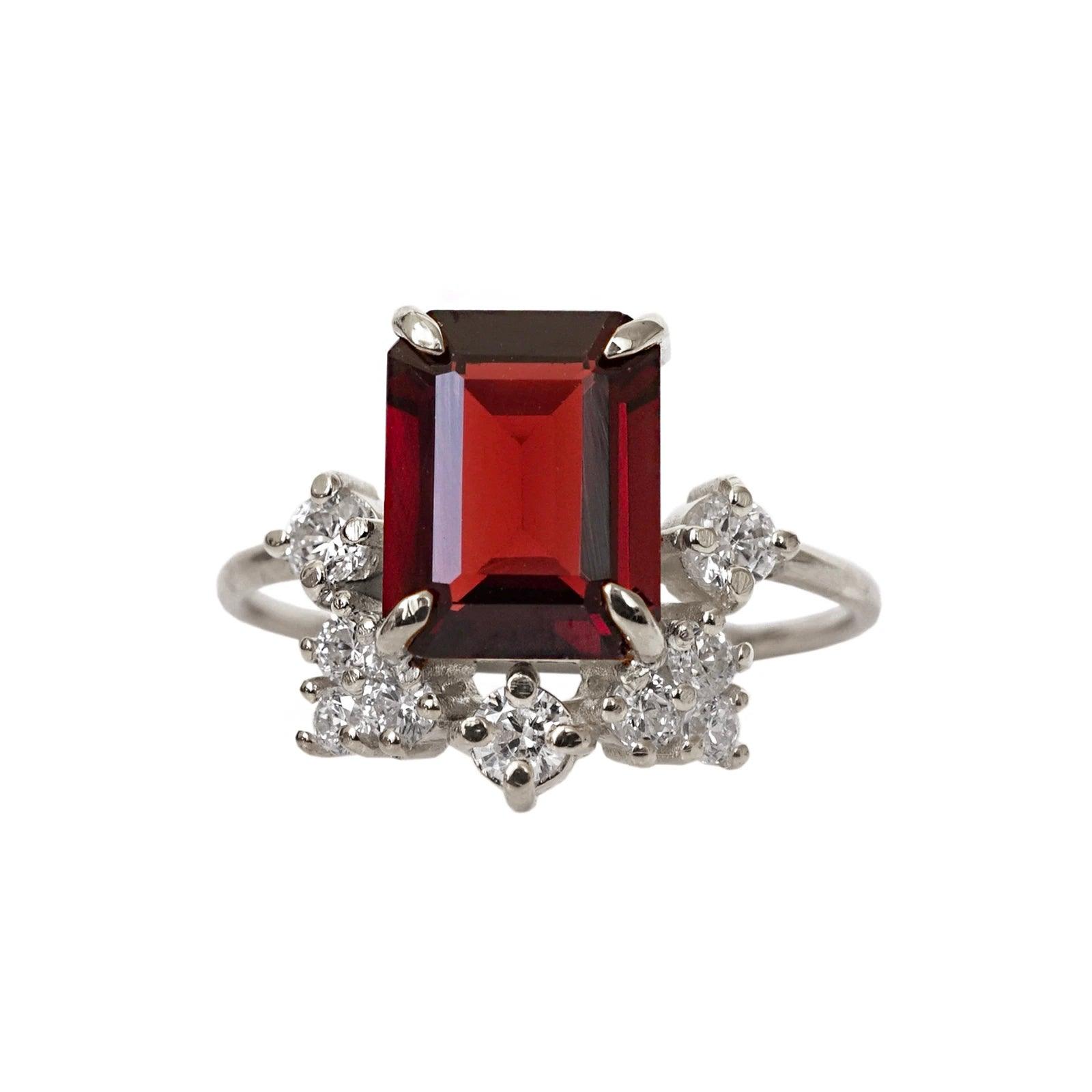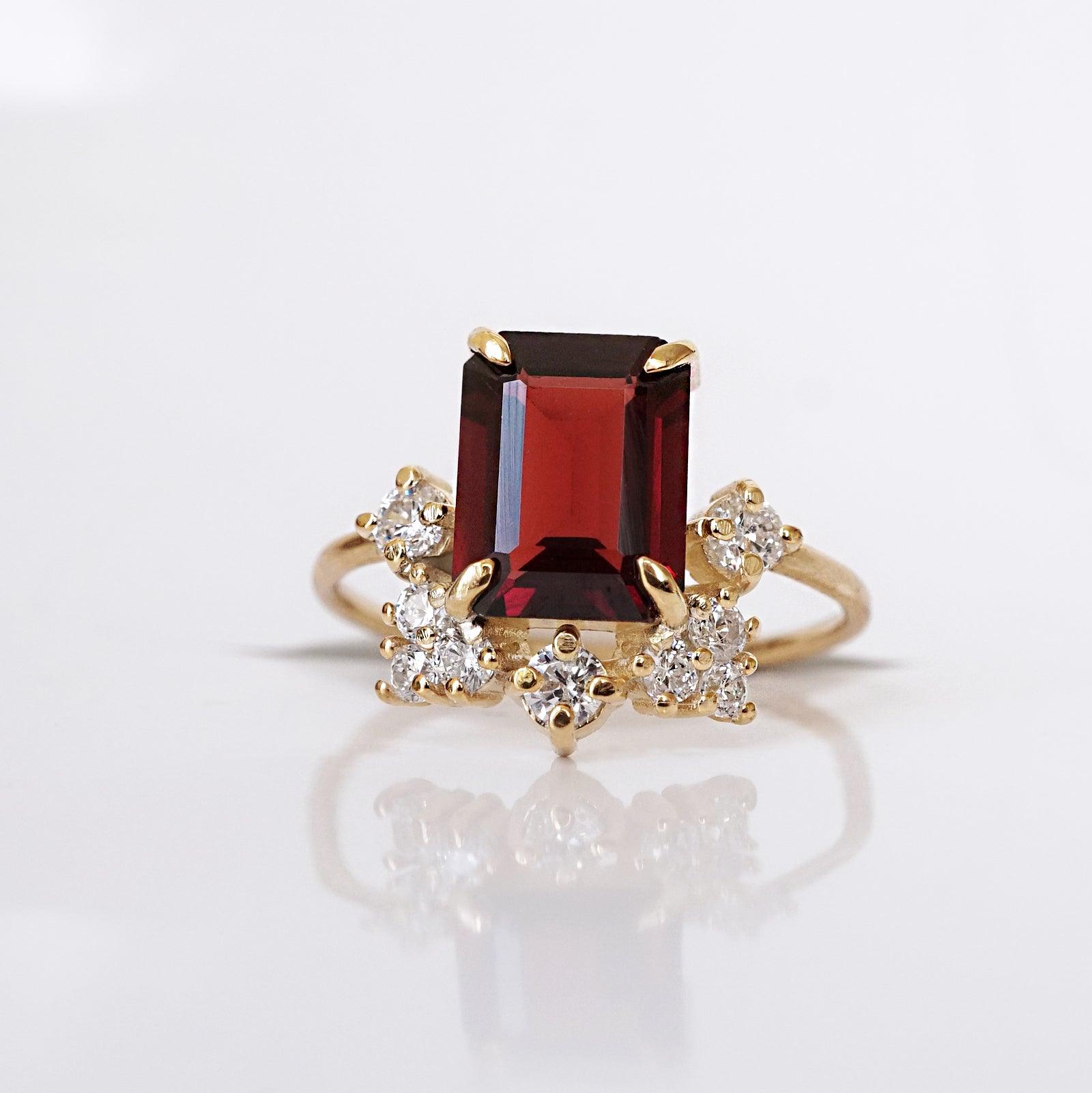 This Bordeaux Garnet ring is fit for a royalty. Featuring a natural garnet surrounded by sparkling white CZs.