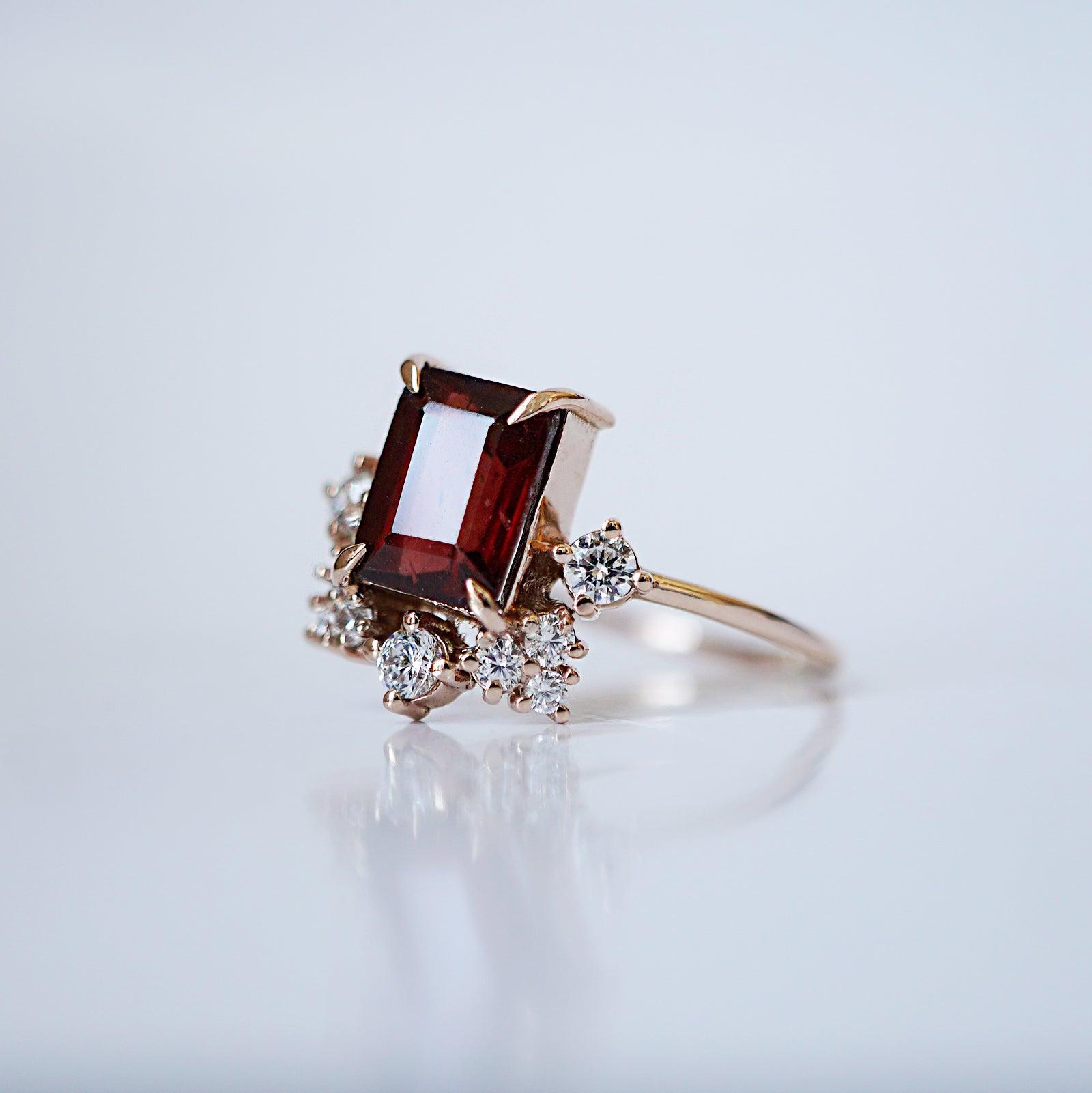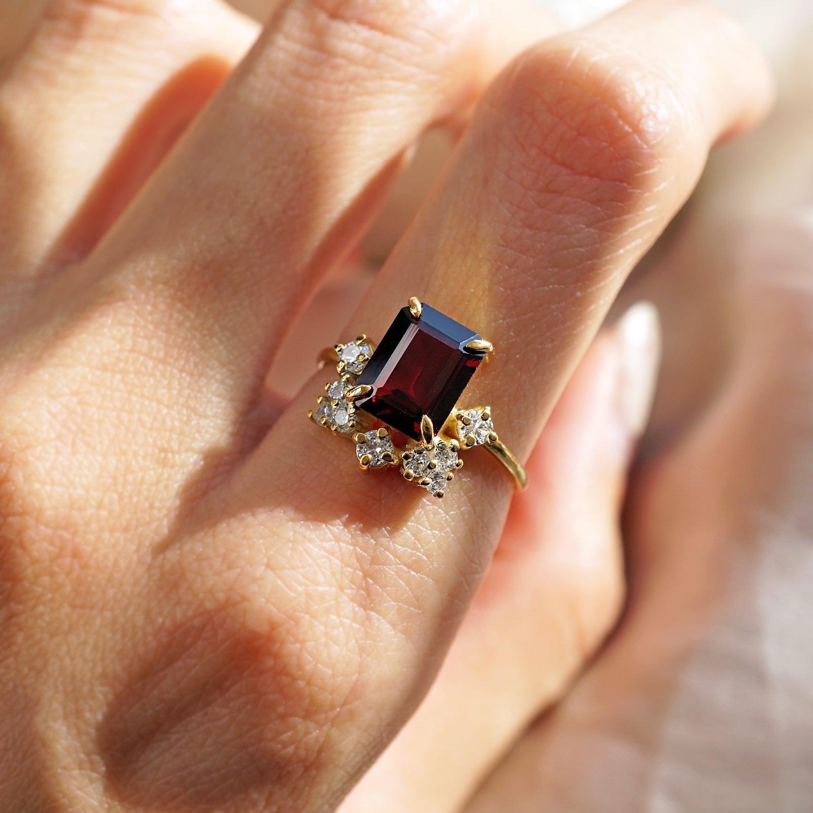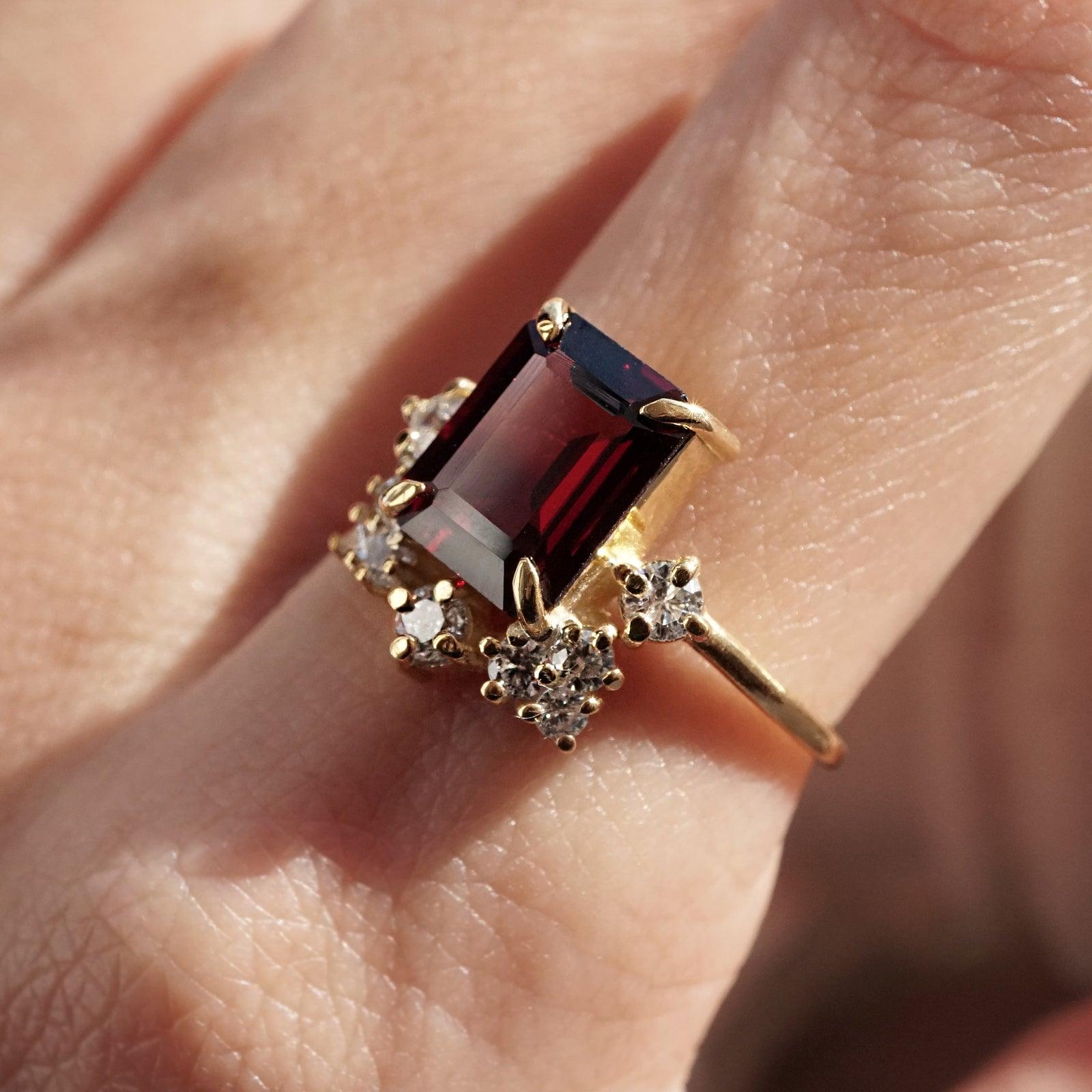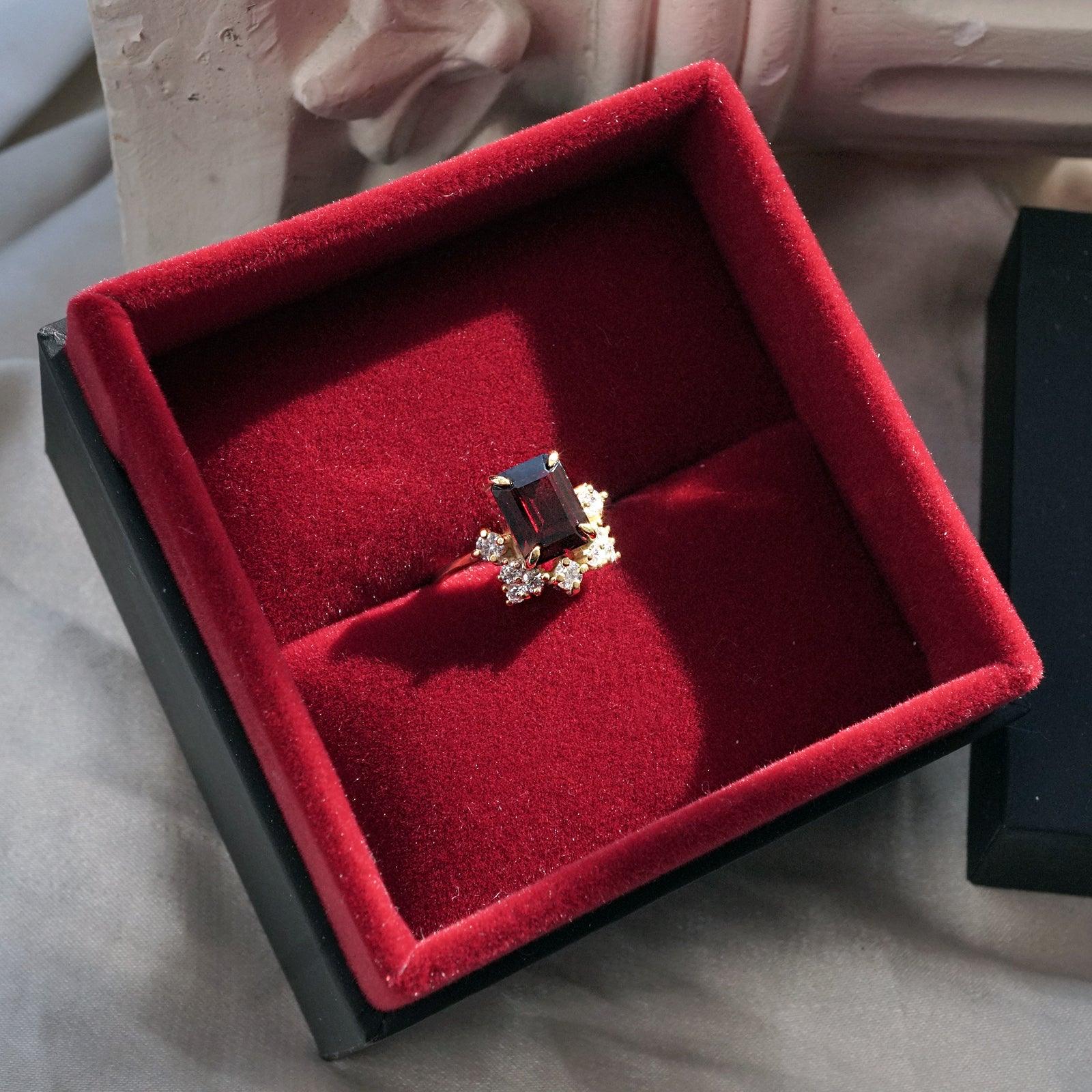 This Bordeaux Garnet ring is fit for a royalty. Featuring a natural garnet surrounded by sparkling white CZs.