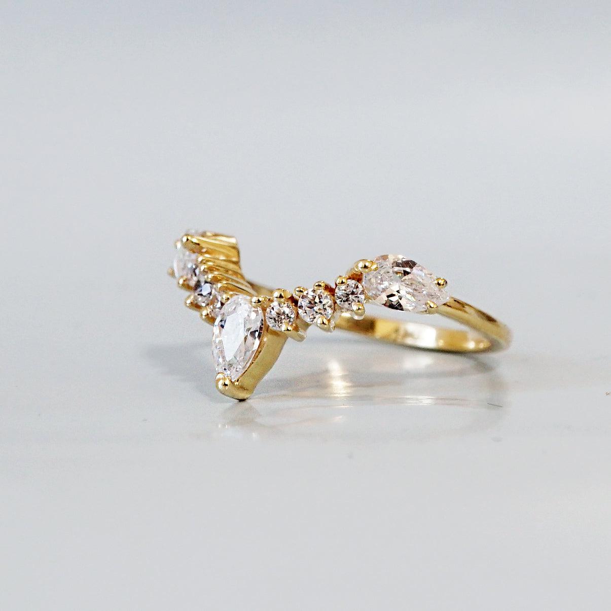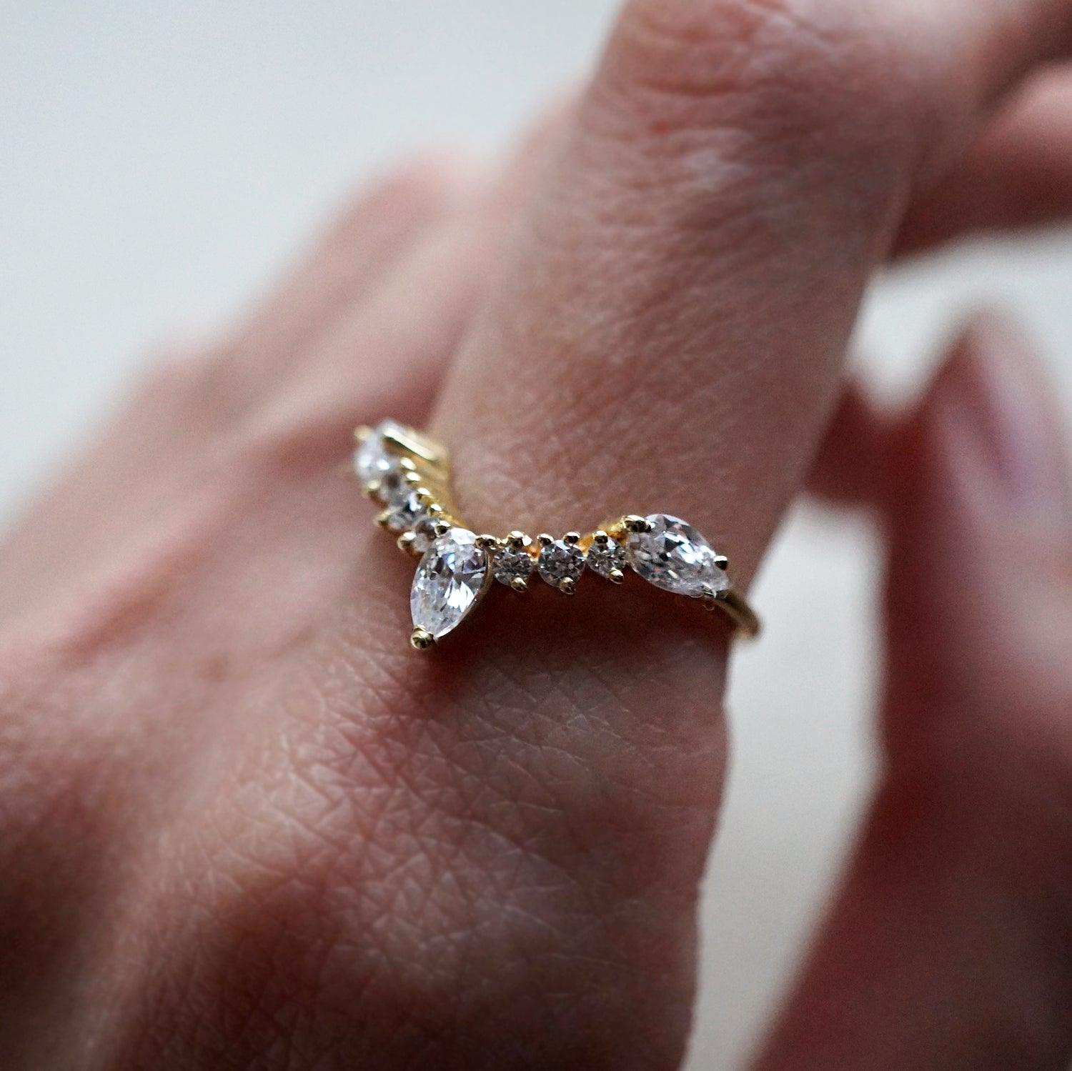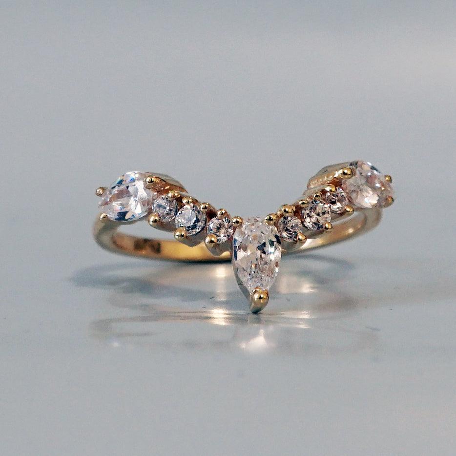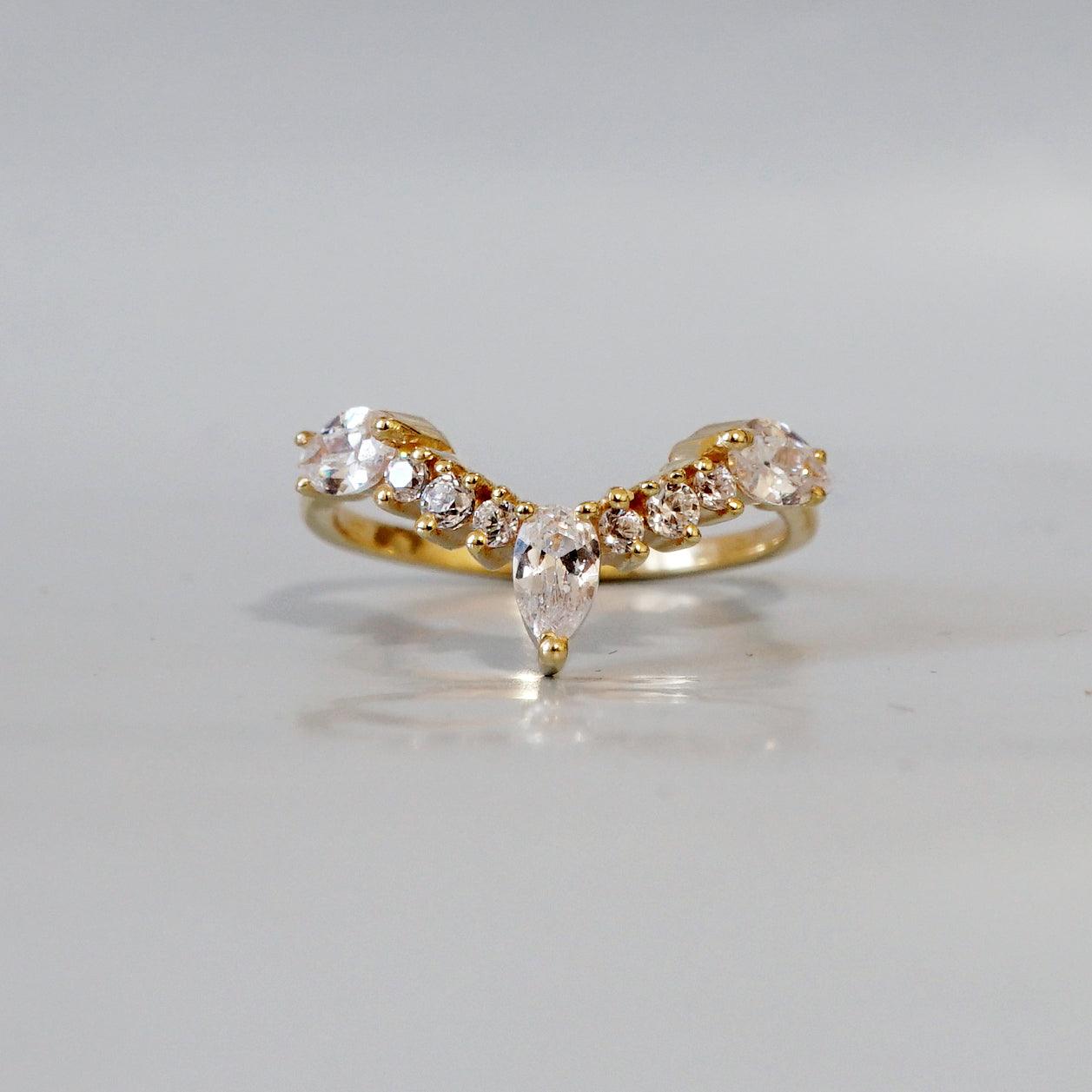A stunning V-band designed to stack with most of Tippy Taste rings to create an unintentional fairytale stack. Available in yellow gold vermeil.